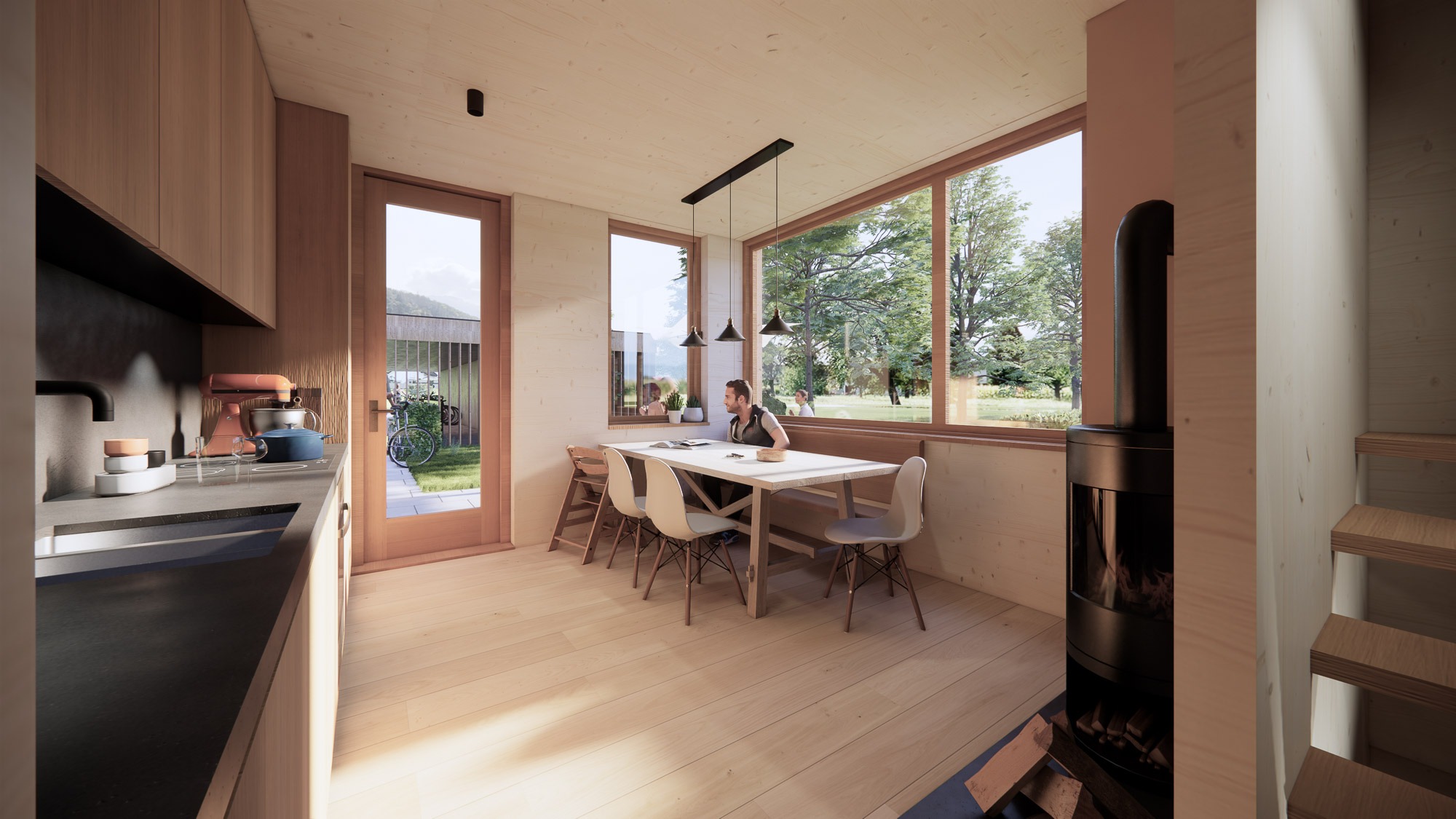 Die Häuser aus Vollholz bieten alles, was ein Zuhause braucht: Stauraum, einen Treffpunkt im Erdgeschoss, Rückzugsmöglichkeiten in den drei Schlafzimmern, einen Außenbereich mit Terrasse und Garten sowie Parkmöglichkeiten in der Tiefgarage. Mit einem Holzofen ausgestattet, schaffen sie eine gemütliche Atmosphäre. Die Lage in der Nähe von Nahversorgern, Schulen und Natur macht dieses Projekt perfekt für Familien.