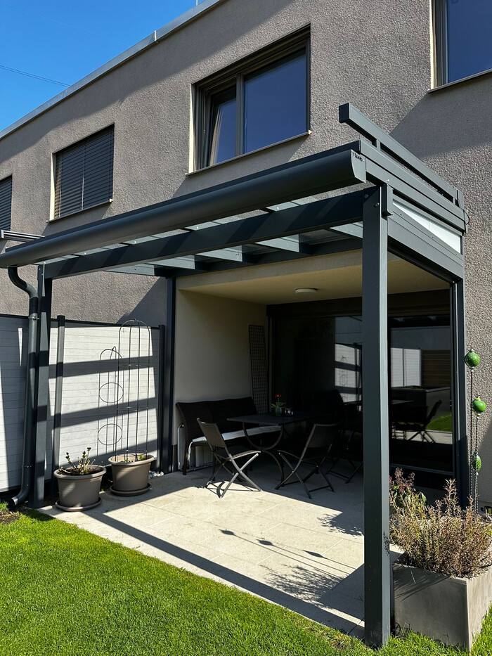 Vom Wohnbereich aus gelangt man auf eine überdachte, wind- und sichtgeschützte Terrasse. Der komplett eingezäunte Gartenbereich lädt sowohl zum Entspannen, als auch zum Gärtnern ein. Ein besonderes Highlight ist die hochwertige Küche, welche neben einem Weinschrank über eine integrierte Speisekammer verfügt, welche gleichzeitig auch praktischerweise als Hauswirtschaftsraum dient.