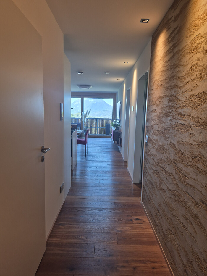 Elektrotechnisch wurde die Wohnung komplett mit Loxone Smart Home ausgestattet. Das bedeutet, dass jede Beschattung, jedes Licht (dimmbar), die Fussbodenheizung, die Fussbodenkühlung, das Radio, die Alarmanlage,... digital über das Handy gesteuert und überwacht werden können.