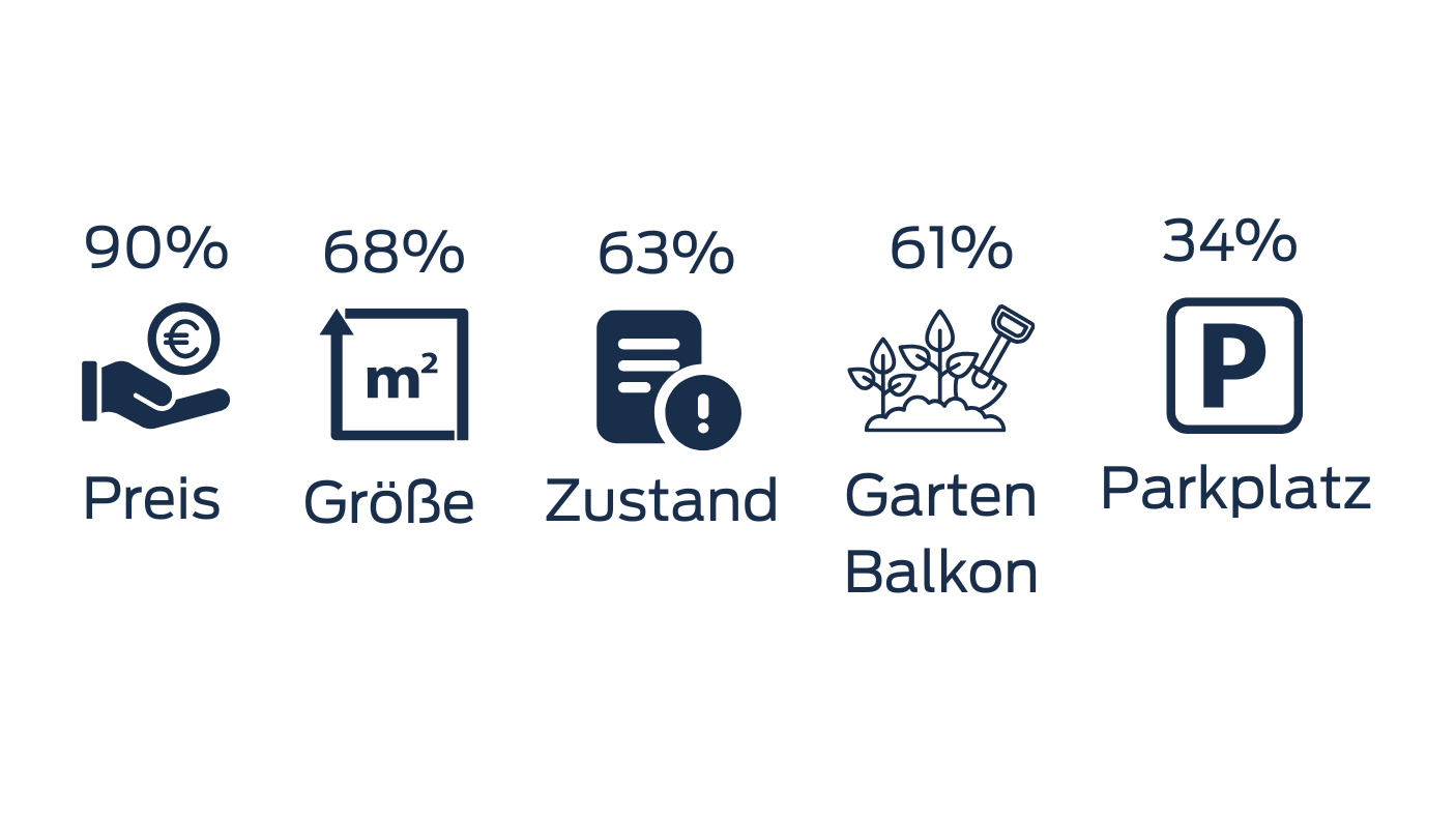 Preis, Zustand und Größe sind entscheidend, aber auch Outdoorflächen wie Balkon oder Garten spielen eine wichtige Rolle.