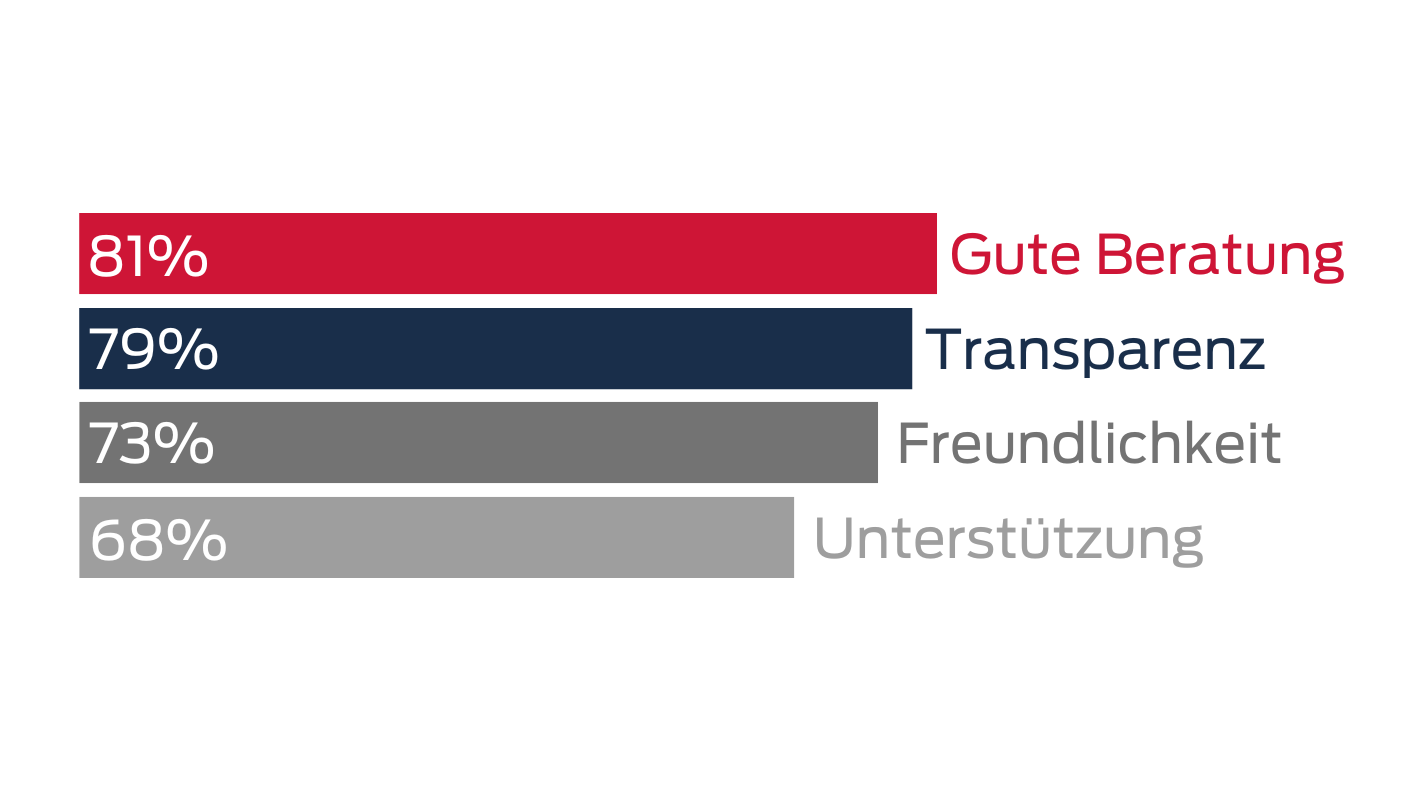 Gute Beratung, Transparenz und Freundlichkeit zählen zu den Top-Anforderungen, die Kundenerwartungen sind hoch und klar definiert.