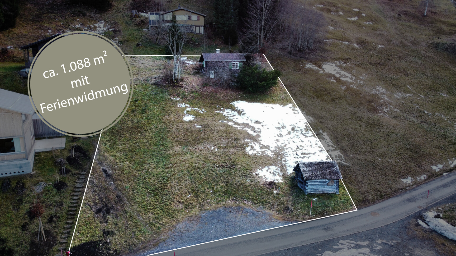 Die gesamte Grundstücksfläche ist als Baufläche‑Wohngebiet zur Errichtung eines Ferienobjekts gewidmet. Die Liegenschaft setzt sich aus zwei aneinandergrenzenden Grundstücken zusammen. Laut Teilbebauungsplan der Gemeinde Frastanz ist pro Grundstück die Errichtung eines Ferienhauses zulässig – mit bis zu 100 m² überbauter Fläche, zwei Obergeschossen und einem Untergeschoss.