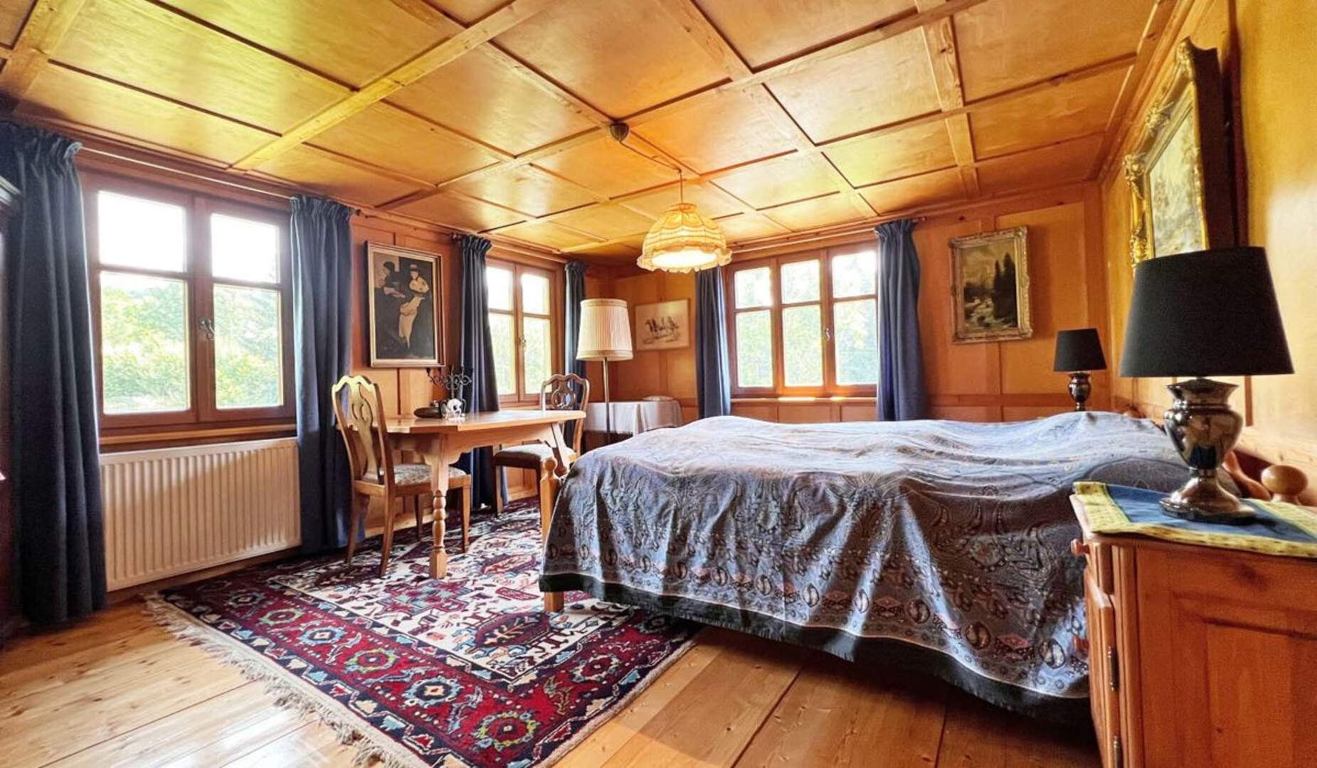 Dieses traditionelle Bregenzerwälder Ferienhaus aus den 1920er Jahren bietet alles, was man von einem solchen wünscht. Das Herzstück bildet die schöne, große Stube mit angeschlossener Bar im Erdgeschoss, welche mit Zirbenholz getäfert sind. Ein Kachelofen sowie eine Eckbank sorgen für Gemütlichkeit. Hier findet eine große Familie Platz- oder auch zwei. Nebenan liegt die große Wohnküche, sie bietet Platz für gemeinsames Kochen wie in alten Zeiten auf dem Holzherd. Aber auch ein Elektrostandherd und ein großer Kühlschrank sind vorhanden, gespült wird von Hand. Ein großer Gesellschaftsraum mit vorgelagerter Garderobe und ein Gäste-WC runden diese Ebene ab. Holzböden und Sprossenfenster sowie Holztäfer-Wände bestimmen auch das Ambiente im restlichen Haus. Im Obergeschoss bieten fünf Schlafzimmer Platz für sieben bis neun Personen. Daneben liegt eine kleine „Hausmeister-Wohnung“ mit kleiner Küche, einem Wohn- und einem Schlafzimmer. Auf diesem Geschoss ist ein holzgetäfertes Badezimmer mit Dusche und ein gefliestes Badezimmer mit Wanne installiert. Im Dachgeschoss gibt es nochmal weitere fünf Schlafzimmer. Geheizt wird mit Kachelofen und Ölheizung. Die größeren Schlafzimmer verfügen über ein Waschbecken, teilweise ist auch einen Kachelofen vorhanden, die jedoch nicht mehr in Betrieb sind. Im Hanggeschoss sind eine Doppelgarage, (hier stehen die Fahrzeuge hintereinander), eine Waschküche mit fließendem Quellwasser, der Heizungsraum und ein Kühlraum sowie ein Lagerraum untergebracht. Das Haus wurde früher als Jagdhaus genutzt und ist ideal für eine große Gruppe, sei es eine Familie, mit Freunden oder auch zwei Familien. Gartenflächen zum Grillen und Verweilen sind vorhanden. Wer möchte kann sein eigenes Gemüse ziehen oder im Wald sein Holz für Ofen und Herd machen. Die Wiesen werden von einem Landwirt gemäht.