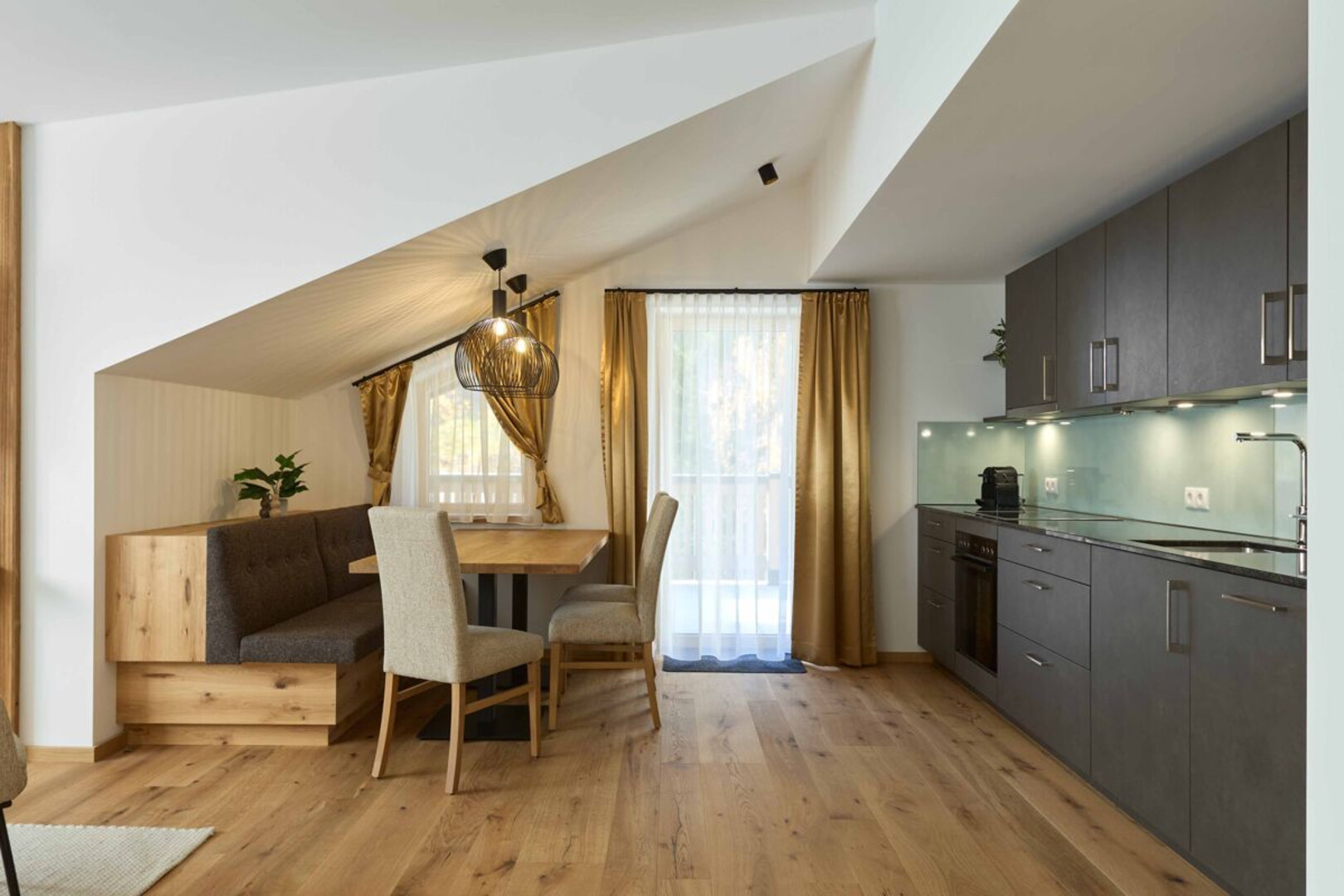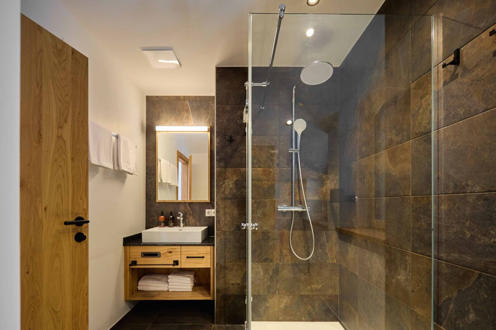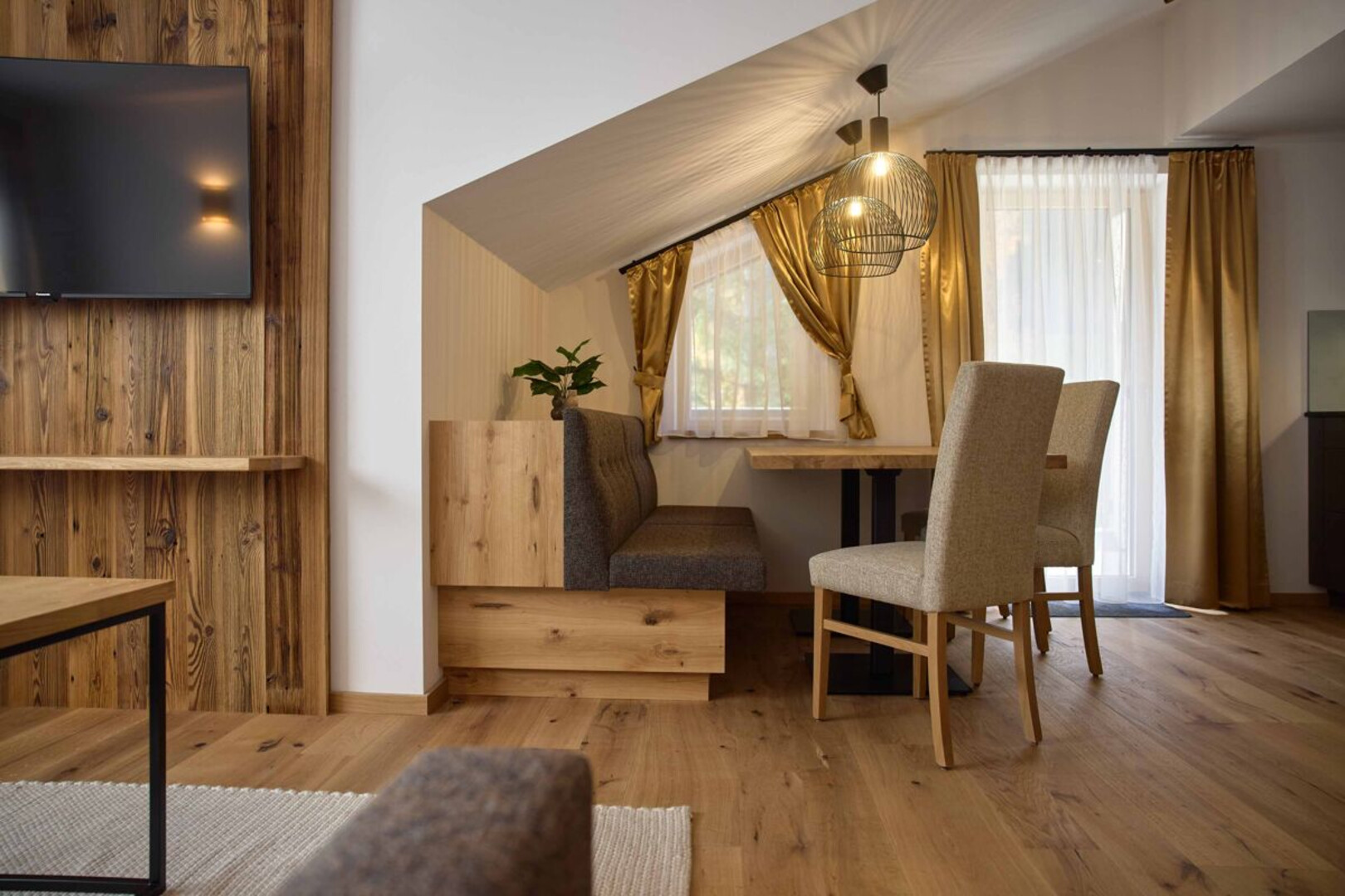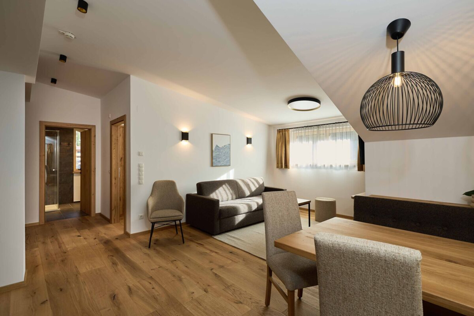 Exklusivität trifft in dieser 72 m2 Suite auf natürliches Wohlfühlambiente – mit hohen, lichtdurchfluteten Räumen. Der Balkon bietet einen Top-Ausblick auf die Montafoner Berge. Und die private Außensauna (optional) lädt zum Entspannen ein, während du in die Natur blickst.