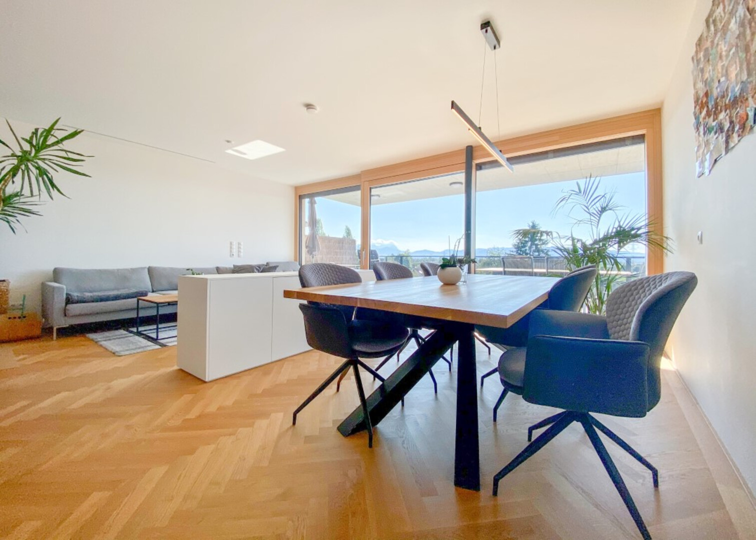 Auf dem nach Südwesten ausgerichteten Hanggrundstück an der Bahnhofstraße ist die Kleinwohnanlage mit 13 Wohnungen. Um einen hochwertigen Außenraum zu erhalten, wird eine Tiefgarage erstellt. Sämtliche Wohneinheiten erhalten großzügige, teils überdachte und nach Südwest ausgerichtete Terrassen. Neben der Aussichtslage lässt sich auch die Ausstattung sehen: großzügige Holz-Alu-Fenster mit Dreifach-Verglasung, Niedrigenergiehaus, Erdwärme-Heizanlage, elektrischer Sonnenschutz, Echtholzparkett, Lift, Sonnenterrassen usw.