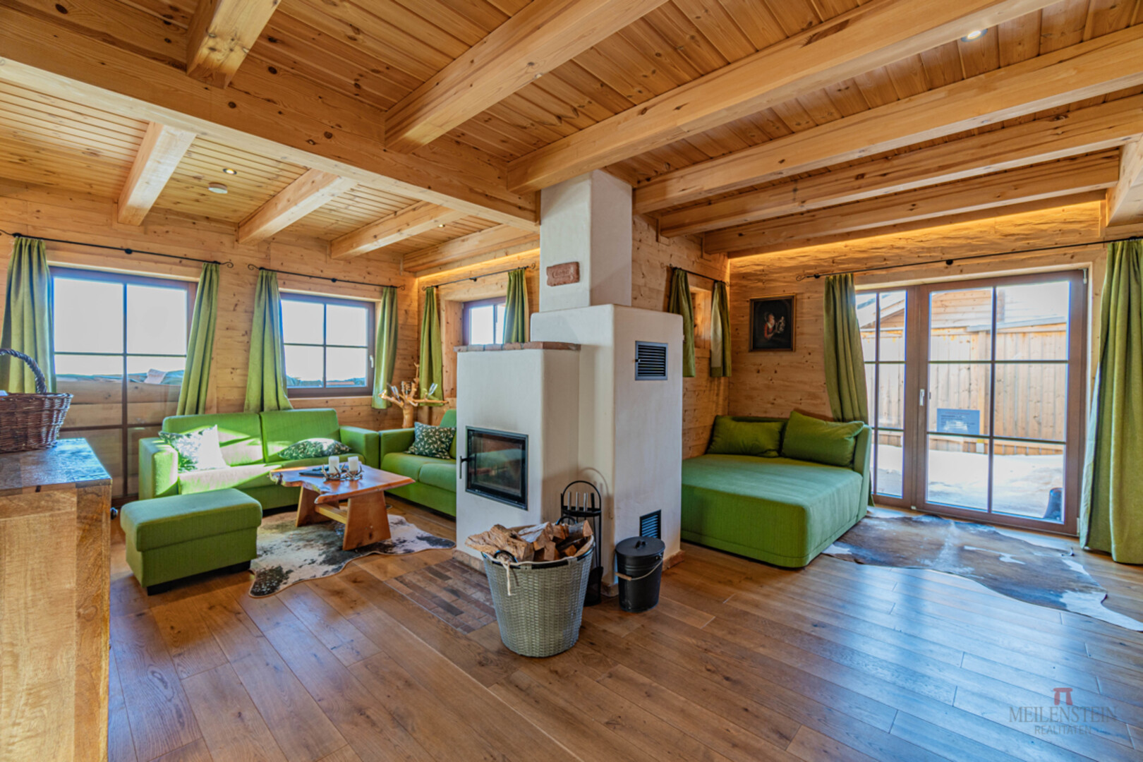 Alle Chalets wurden unter Berücksichtigung der Natur ökologisch mit heimischen Hölzern sowie vorgefertigten Blockhäusern aus Lappland errichtet. Natürlich alles unter bedacht, dass sich das Almdorf in einem Biosphären Park im hochalpinen Gebiet befindet. In den Chalets vereinen sich traditionelle und moderne Elemente zu einem Urlaubsdomizil von einzigartigem Design und Wohnkomfort. Alle Chalets sind voll möbliert sowie komplett ausgestattet und verfügen über einen hochwertigen Kachelofen mit Sichtfenster und elektronischer Steuerung, sowie je einer innen- oder außen Sauna. Jedes Chalet verfügt zudem über einen eigenen Carport Stellplatz innerhalb des Almdorfs, sowie über einen zusätzlichen Freistellplatz. Zusätzlich wurde in jedes der 3 Häuser je ein Abstellraum für Ski oder Wanderausrüstung integriert.