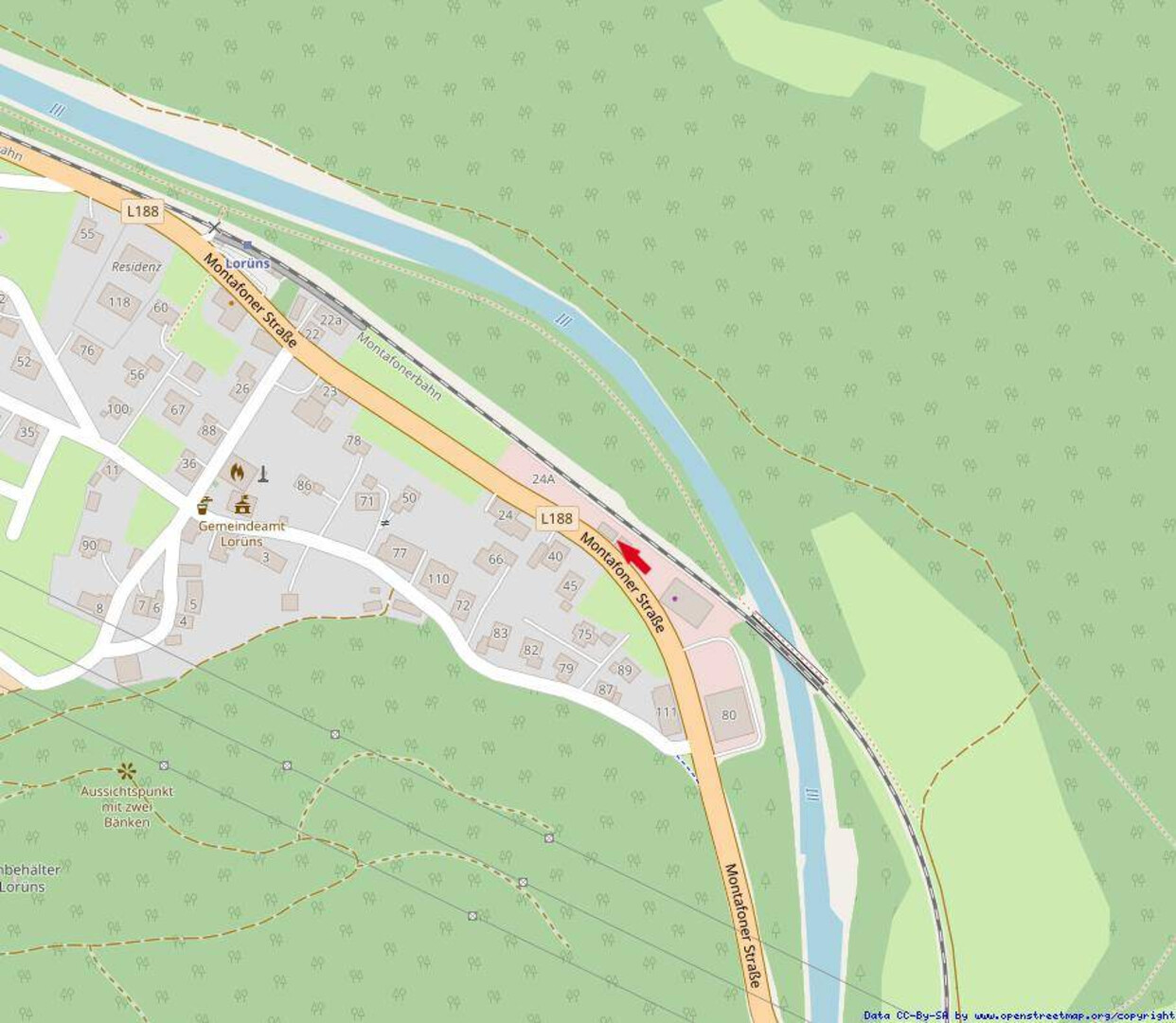 Die Straße L 188 führt direkt am Gebäude vorbei und wird täglich von über 10.000 Fahrzeugen, Richtung das beliebte Schi-und Wandergebiet Montafon befahren.