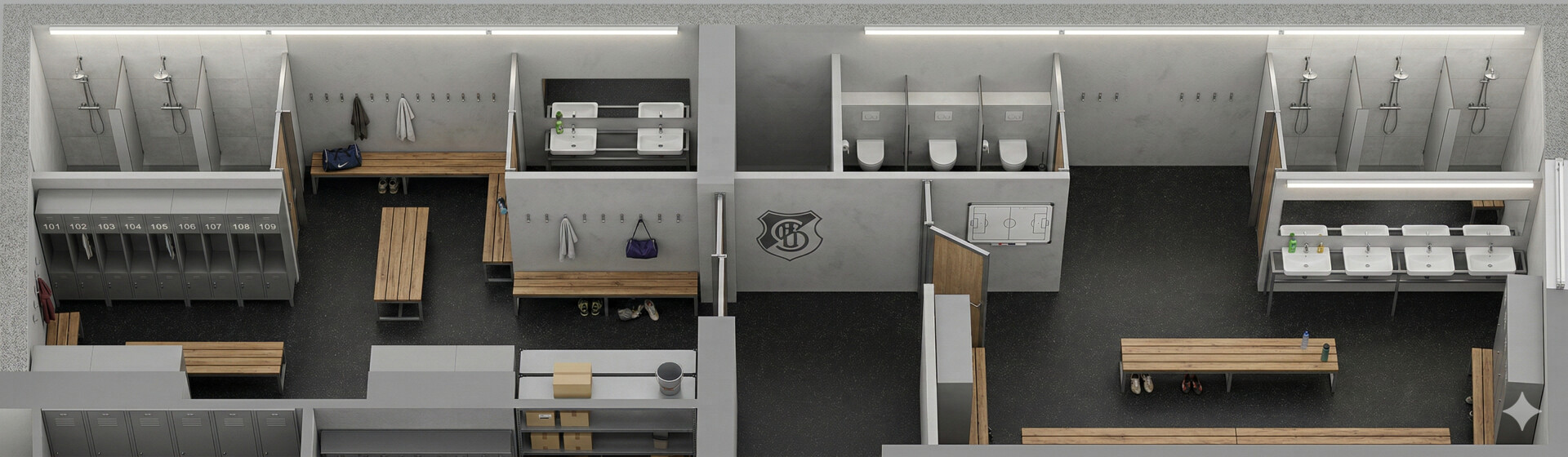 - Sanitär & Umkleiden (NEU!): Diese Bereiche werden aktuell komplett neu errichtet. Sie starten also mit einer modernen, frischen Infrastruktur!
