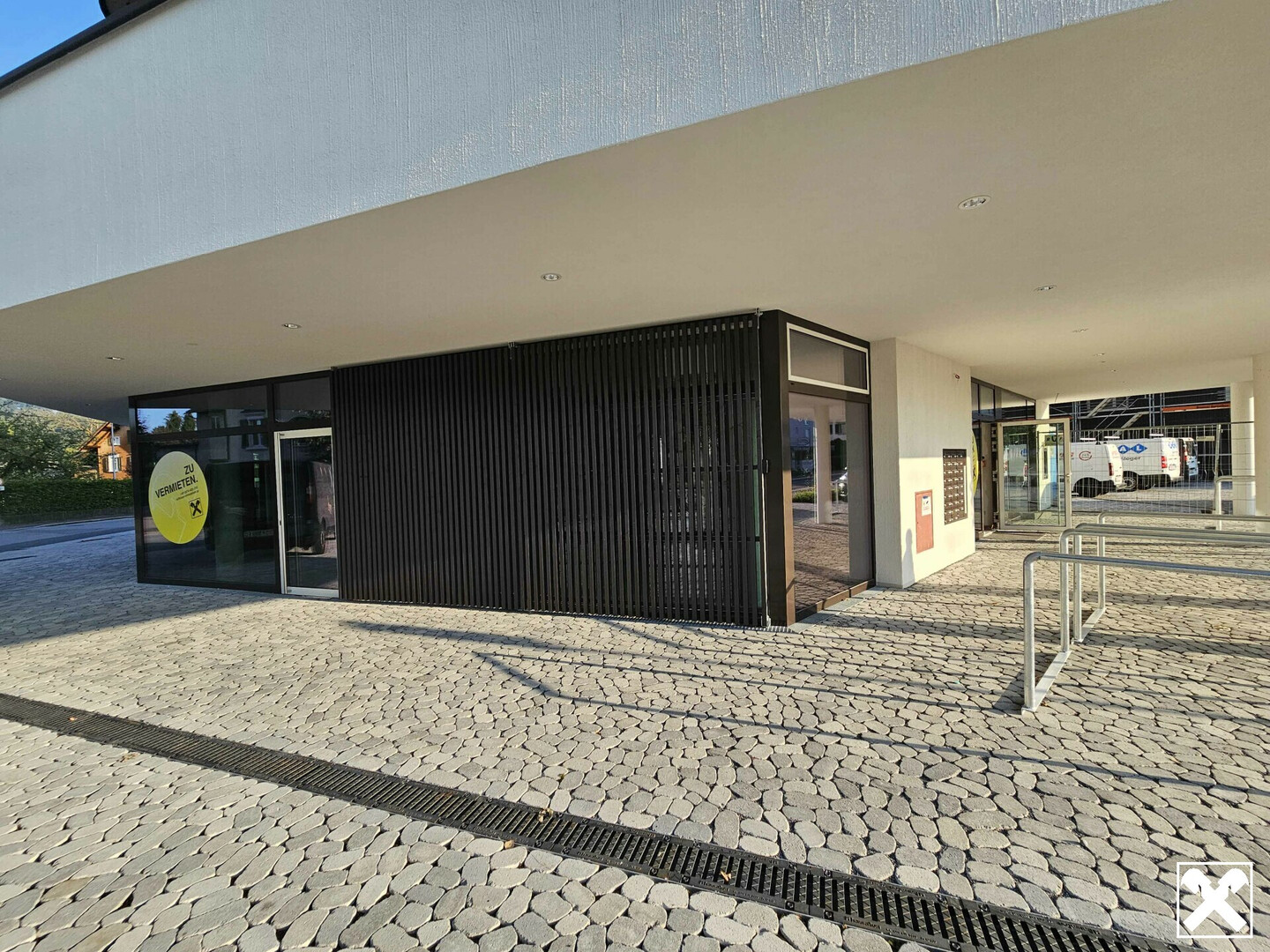 Die große Glasfront sorgt nicht nur für helle Räume, sondern kann auch zur Präsentation Ihrer Waren dienen, oder zur Aussicht für Ihre Gäste.