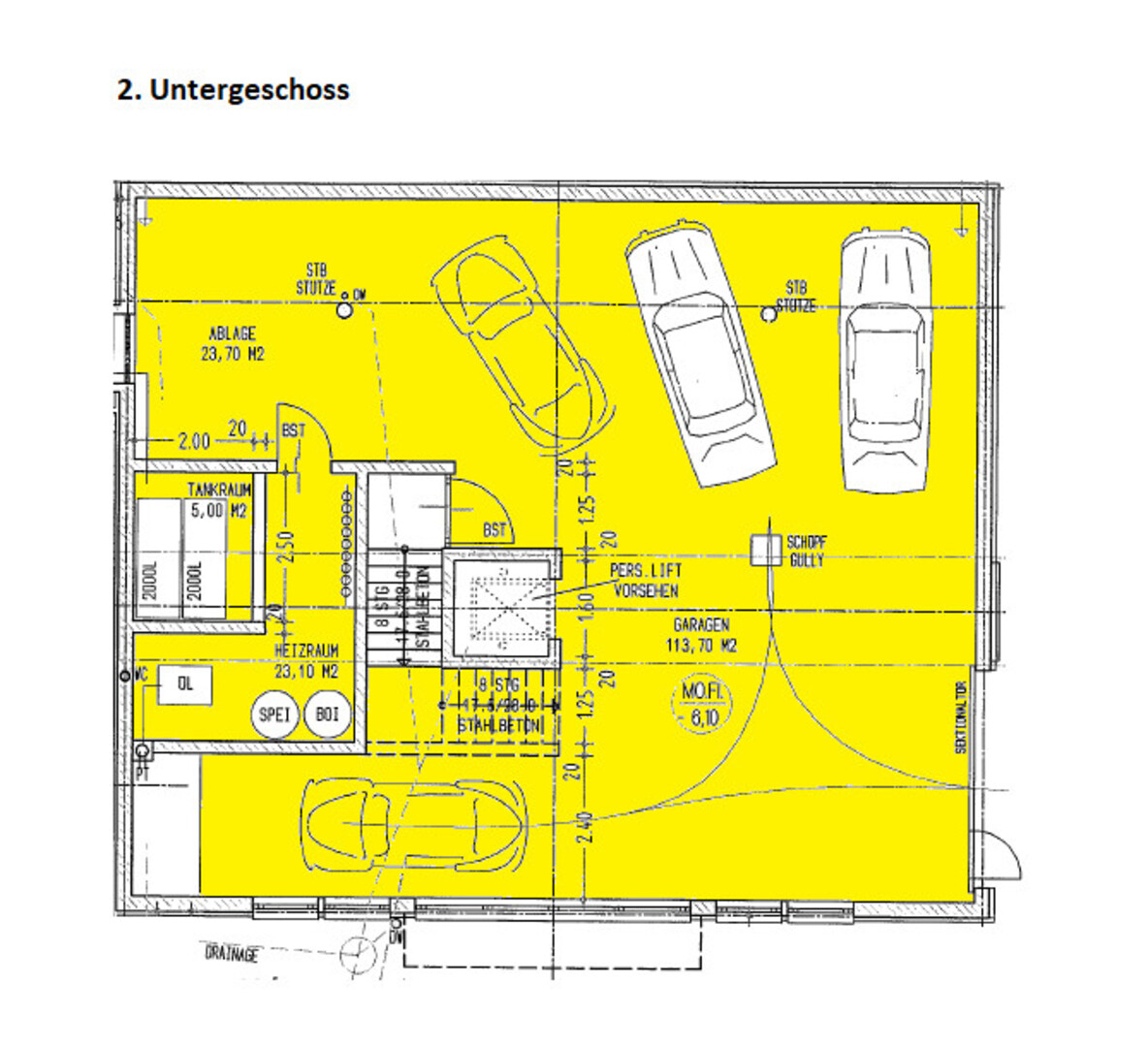 Kellergeschoss (ca. 160 m²): Platz für mehrere Fahrzeuge – ideal als Tiefgarage oder Lagerfläche