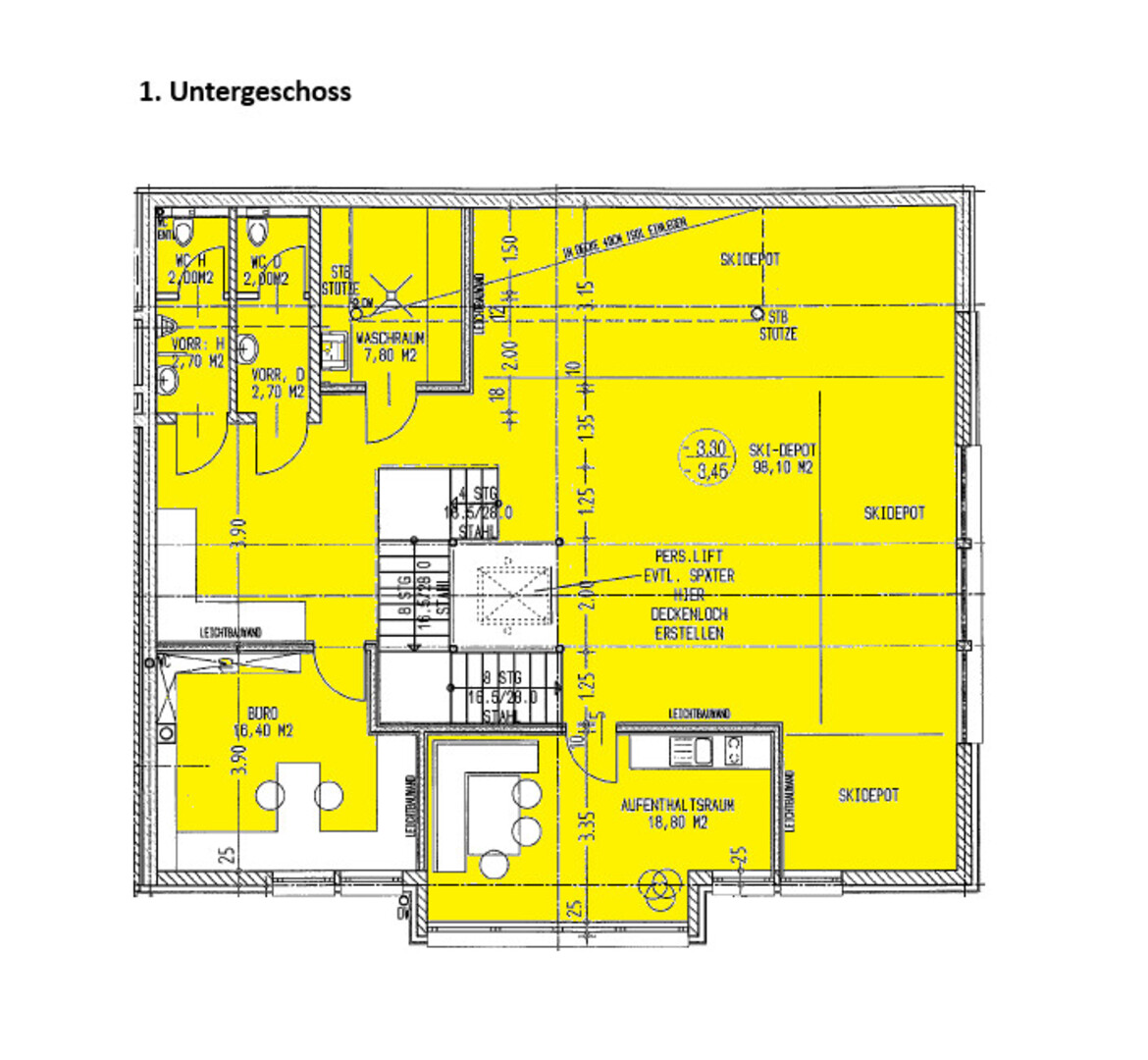 Erdgeschoss (ca. 142 m²): aktuell an den beliebten Ski- und Rodelverleih Laterns vermietet – laufende Mieteinnahmen inklusive