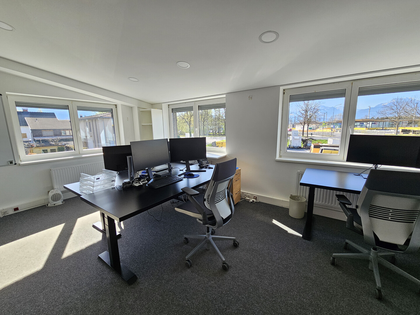 Am Grafenwaldweg 3 in 6833 Klaus erwartet Sie eine attraktive Gewerbefläche im 1. Obergeschoss – ideal für Unternehmen, die einen gut erreichbaren Standort suchen. Die Einheit umfasst zwei helle Büroräume mit ca. 12 m² bzw. ca. 27 m², die sich optimal als Einzel- oder Teamarbeitsplätze eignen. Ergänzt wird das Raumangebot durch ein separates WC und einen Archiv- und Serverraum. Dank der südöstlichen Ausrichtung genießen Sie angenehmes Tageslicht und ein freundliches Arbeitsklima, das durch die vorhandene Klimaanlage zusätzlich unterstützt wird.