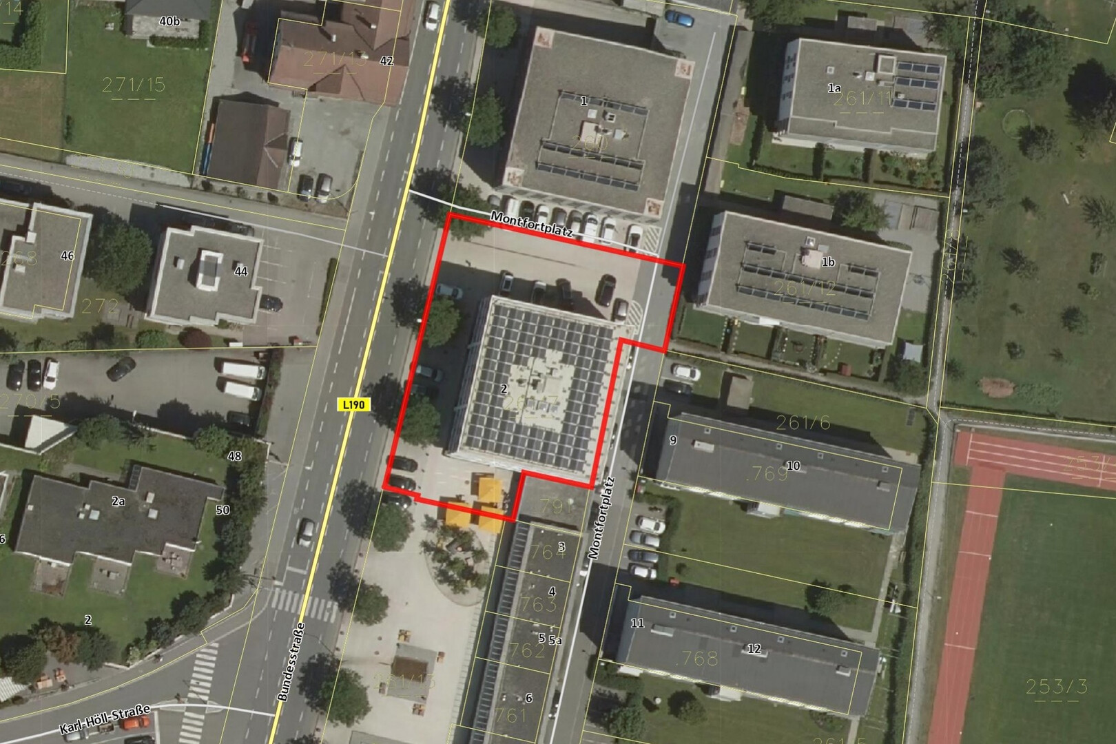 In zentraler Lage am Montfortplatz in Lauterach gelegen, überzeugt die Immobilie durch ihre hervorragende Erreichbarkeit sowie die unmittelbare Nähe zu Unternehmen, Banken und diversen Dienstleistern. Damit befindet sich der Standort in einem wirtschaftlich sehr attraktiven Umfeld.