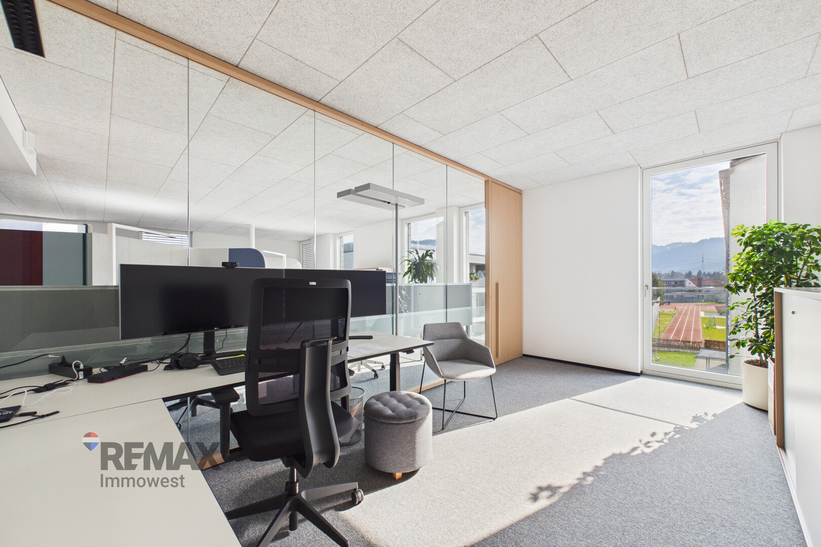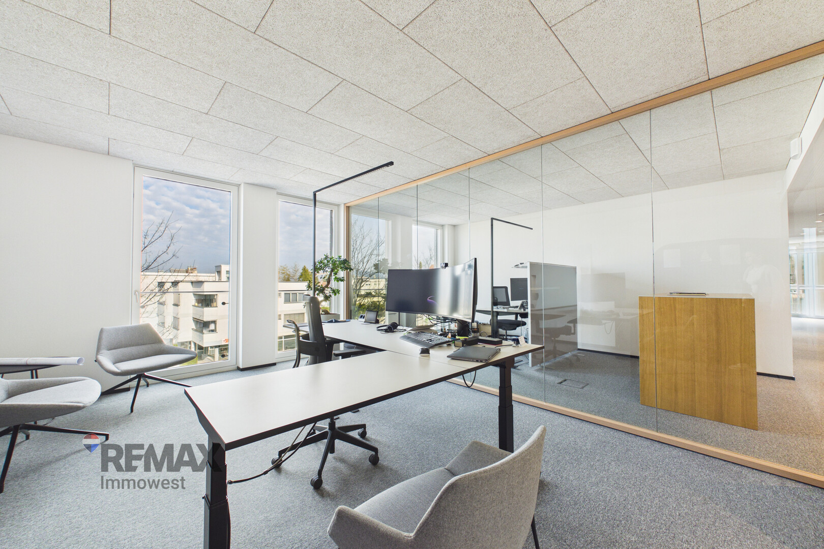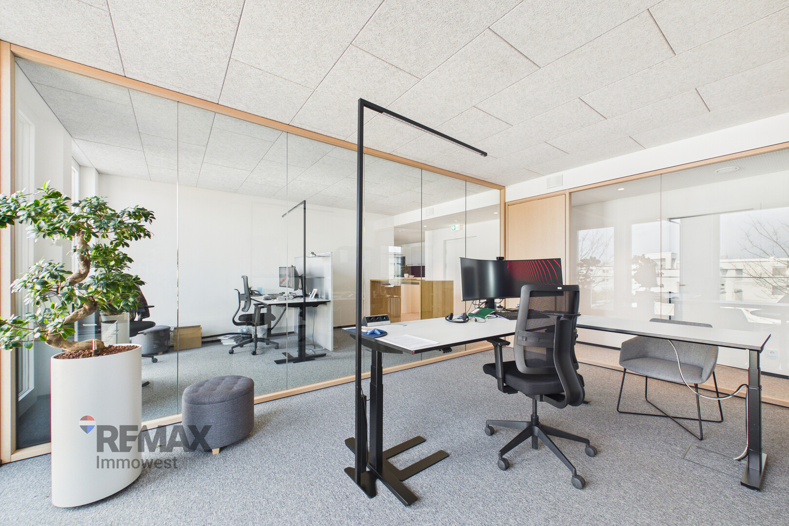 Die Einheit liegt im 2. Obergeschoss und ist komfortabel über einen Personenlift erreichbar. Großzügige Fensterfronten sorgen für helle, lichtdurchflutete Räumlichkeiten und schaffen eine angenehme Arbeitsatmosphäre.