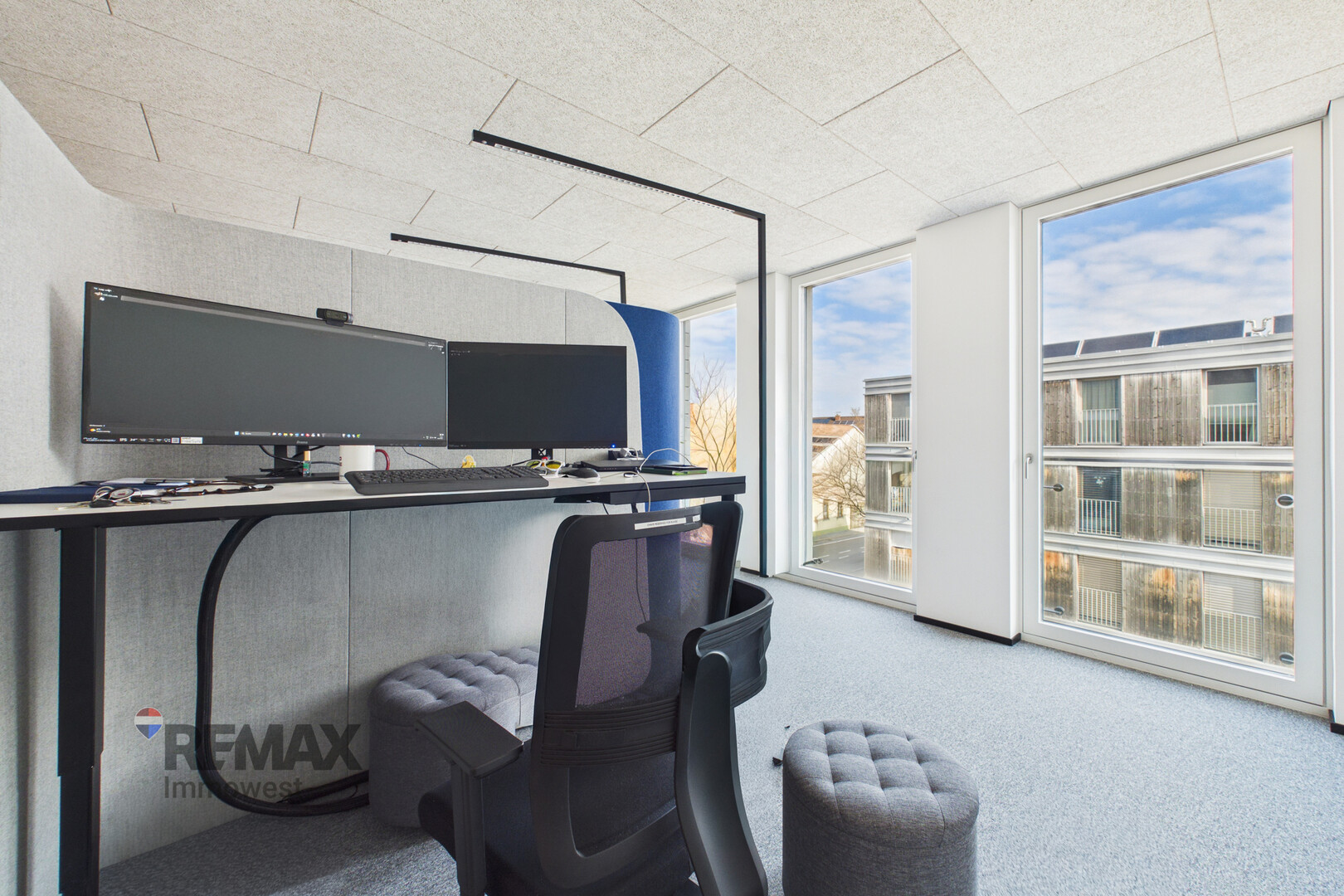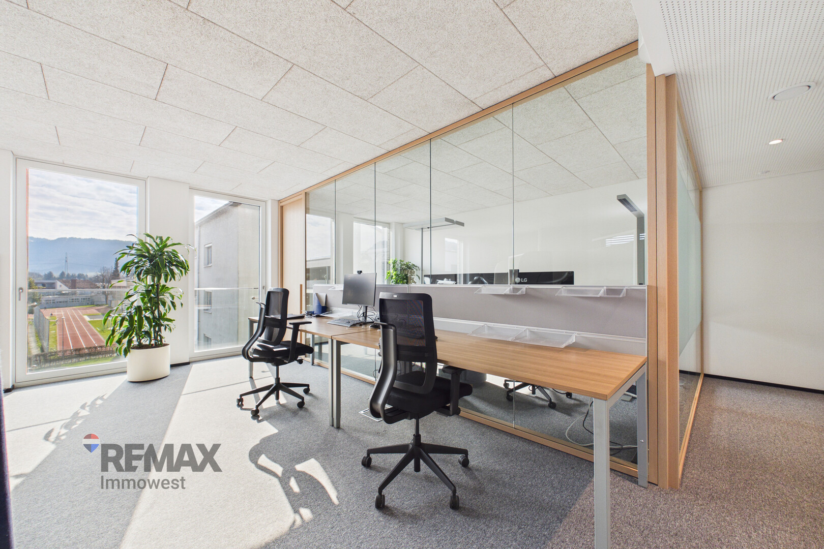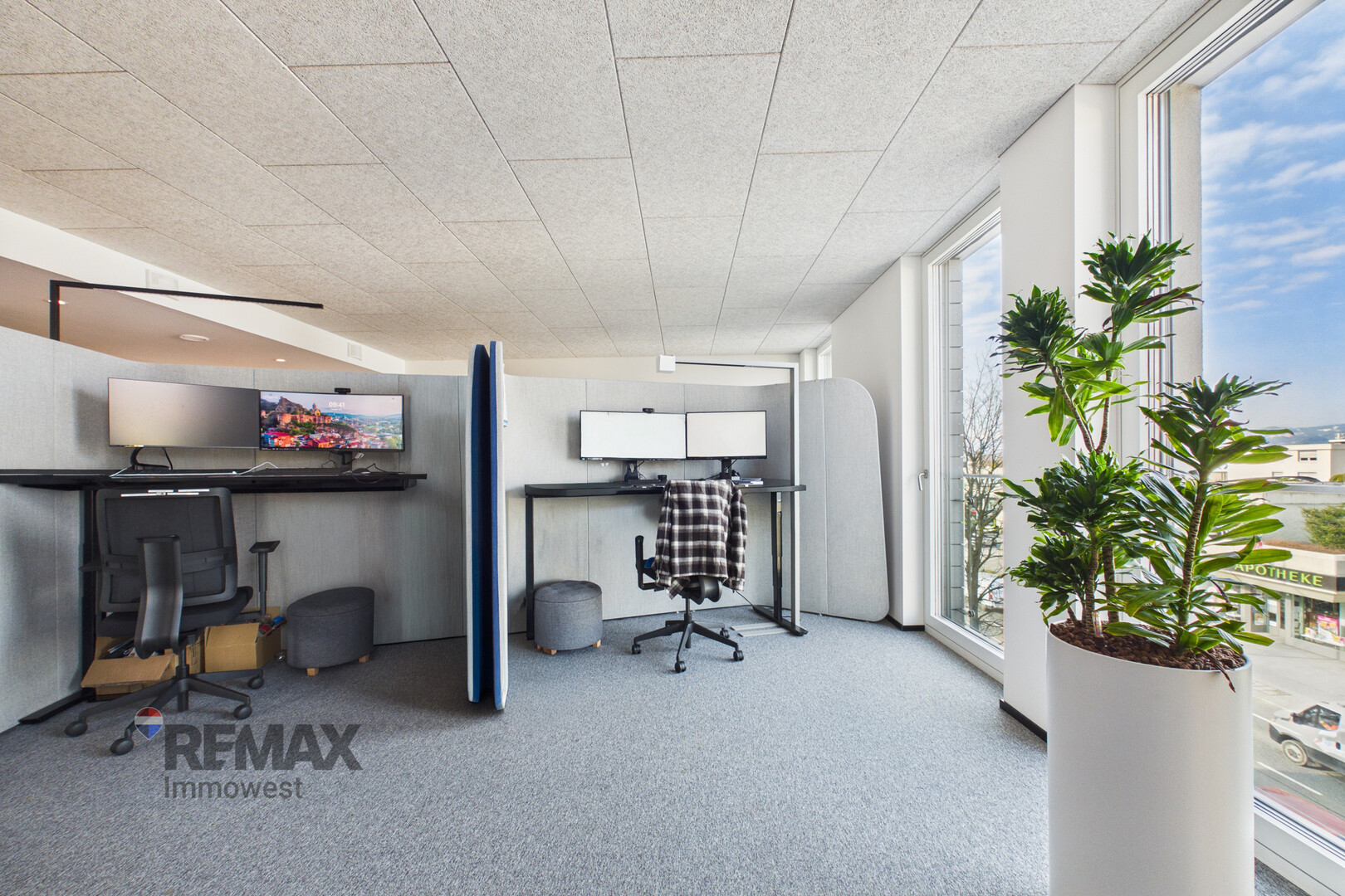 Die Einheit liegt im 2. Obergeschoss und ist komfortabel über einen Personenlift erreichbar. Großzügige Fensterfronten sorgen für helle, lichtdurchflutete Räumlichkeiten und schaffen eine angenehme Arbeitsatmosphäre.
