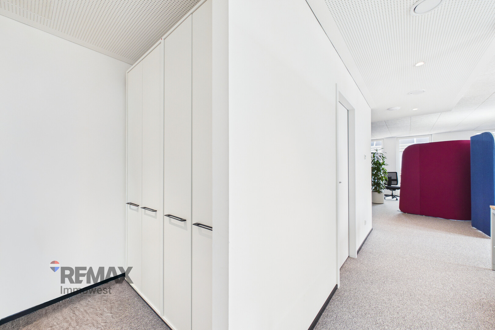 Die Bürofläche mit einer Gesamtnutzfläche von 419,12 m² zeichnet sich besonders durch ihre flexible Teilbarkeit aus: Sie kann bei Bedarf in bis zu vier eigenständige Einheiten mit separaten Zugängen aufgeteilt werden und bietet dadurch ideale Voraussetzungen für unterschiedliche Nutzungskonzepte sowie individuell anpassbare Raumlösungen.
