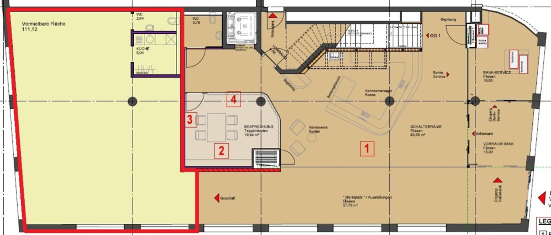 Es handelt sich nach dem Umbau um eine bezugsfähige Edelrohbaufläche.