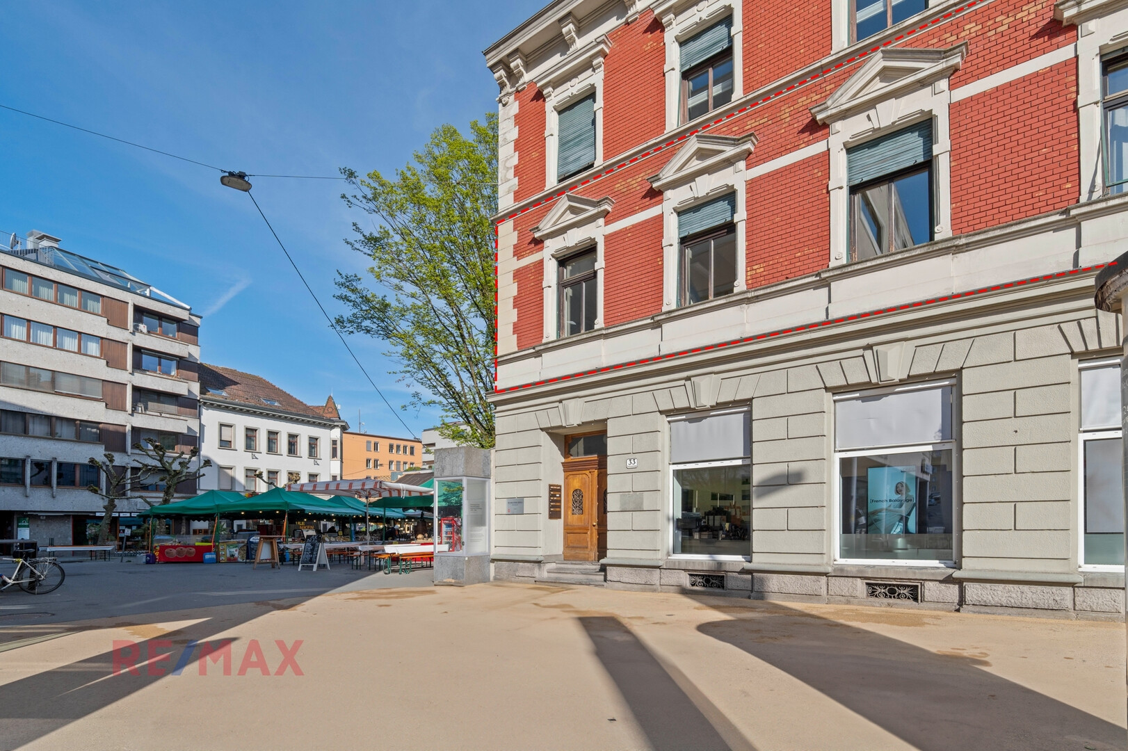 Inmitten der Innenstadt von Bregenz, direkt am beliebten Kornmarktplatz, befindet sich diese attraktive Bürofläche in einem sanierten späthistorischen Gebäude aus dem Jahr 1889. Die Immobilie besticht durch ihr altdeutsches Fassadendekor und vereint historischen Charme mit moderner Funktionalität.