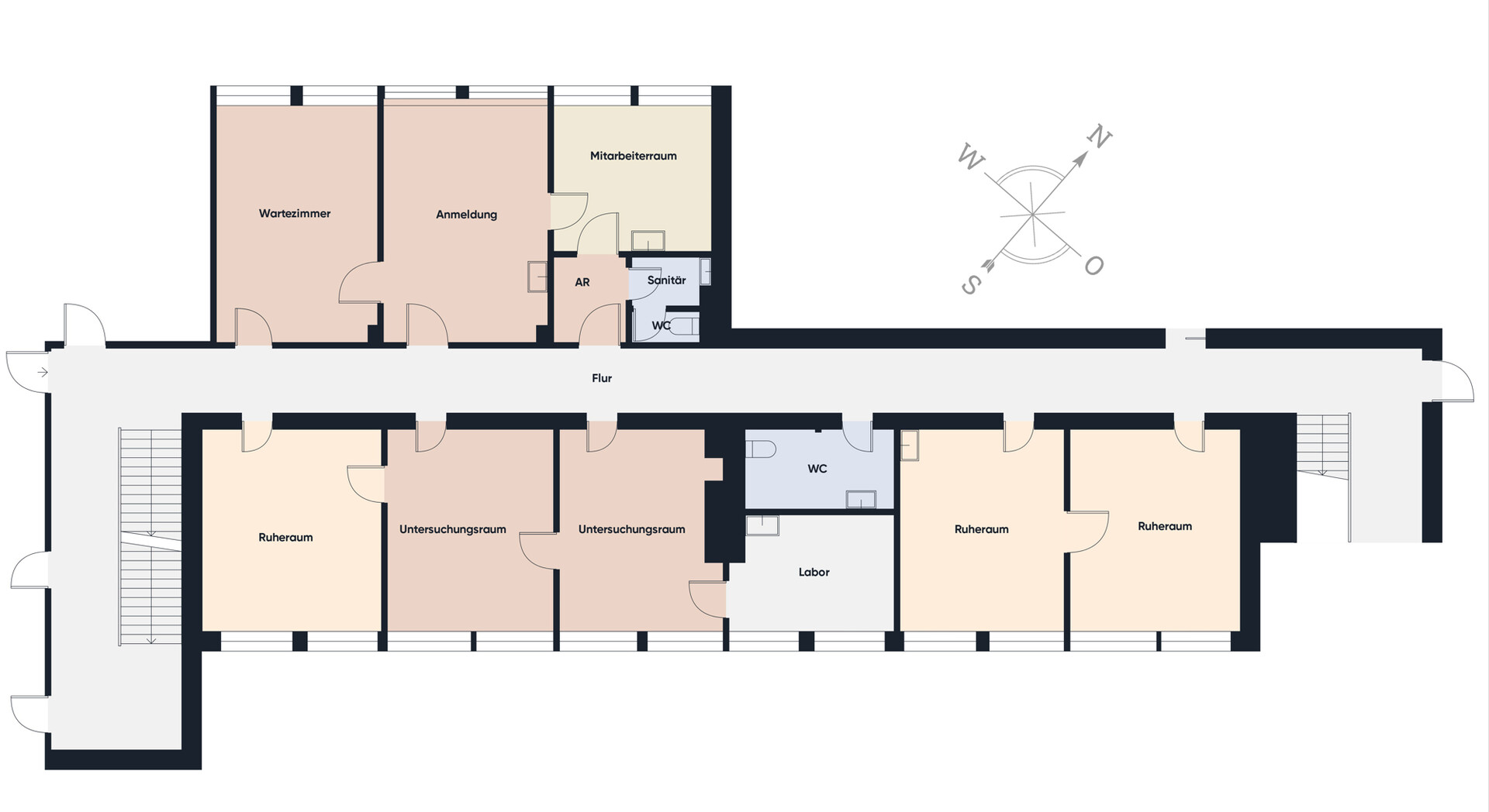 Die Immobilie bietet mit einer Nutzfläche von ca. 156 m² ausreichend Platz für eine Arztpraxis, Ärztehaus oder therapeutische Einrichtungen. Die Raumaufteilung ermöglicht eine flexible Gestaltung – ideal für Wartebereiche, Behandlungsräume und Büroräumlichkeiten.