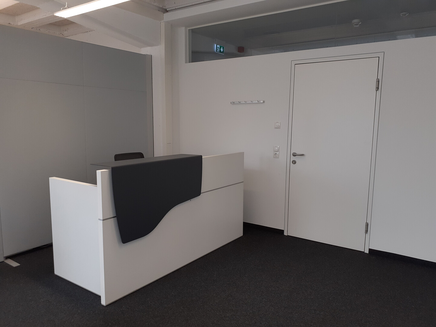 Die Bürofläche mit 125 m² ist durch Glaswände geteilt.