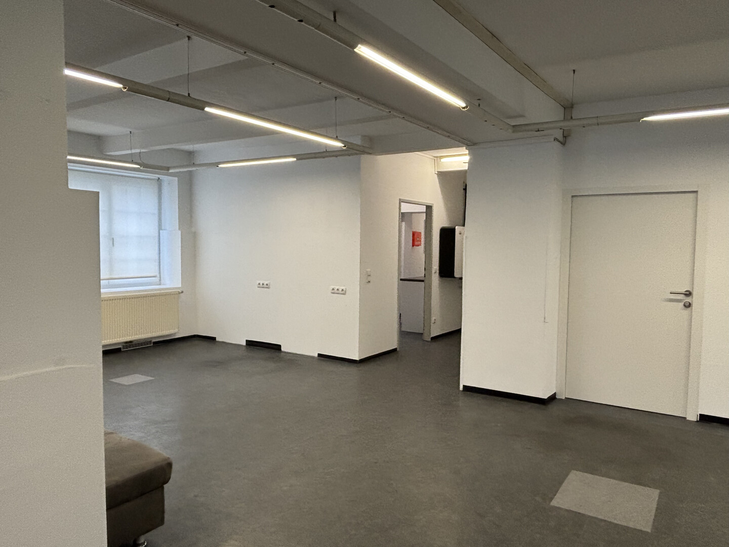 Die Fläche bietet neben einem großzügigen, offenen Raum, der viel Platz für kreative Gestaltungsmöglichkeiten bietet, auch eine kleine Teeküche, ein Gäste WC sowie ein separates Mitarbeiter-WC. Zusätzlich ist ein kleines Büro vorhanden, das sich ideal für administrative Tätigkeiten eignet.