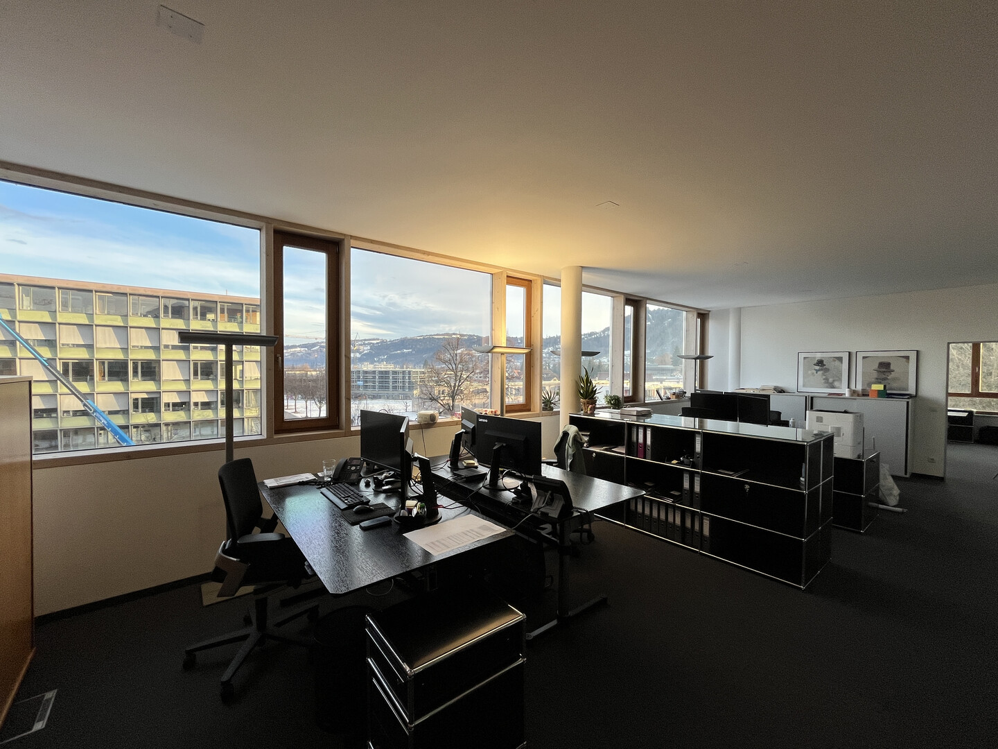 Die Büroräumlichkeiten mit ca. 215 m² Nutzfläche und hohen Raumhöhen (ca. 2,8 m) befinden sich im 3.OG vom Haus A, sind hell und freundlich und ausgestattet mit einer Kühlung, Kugelgarnboden, EDV-Verkabelung über Bodendosen, Außenbeschattung südseitig, einer Teeküche, zwei WC-Anlagen, einem klimatisiertem Server-/Kopierraum, einem separaten Lagerraum und einem elektronischen Zutrittssystem. Das allgemeine Damen- und Herren-WC sind gemeinsam mit anderen Mietern vom Stockwerk zu nutzen. Kostenlose Kundenparkplätze sind im Areal vorhanden. Stellplätze für Mitarbeiter können im Parkhaus um € 56,- netto p.m. zzgl. € 13,50 p.m. Betriebskostenpauschale gemietet werden. Für Büroerweiterungen stehen aktuell im 3.OG vom Haus A ca. 335 m² Büroflächen, sowie im 1.OG ca. 550 m² Büroflächen zur Verfügung.