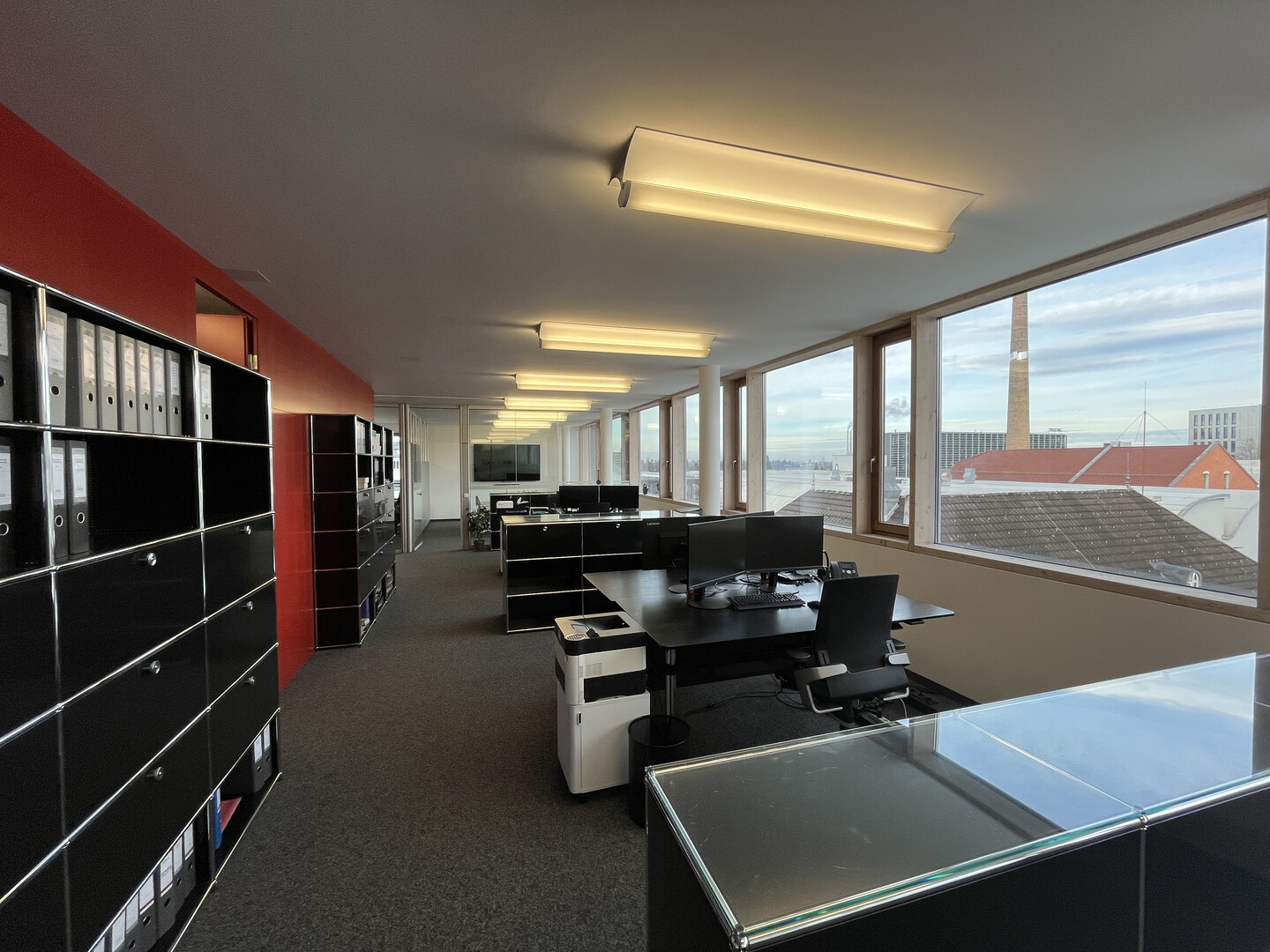 Die Büroräumlichkeiten mit ca. 335 m² Nutzfläche und hohen Raumhöhen (ca. 2,8 m) befinden sich im 3.OG vom Haus A, sind hell und freundlich und ausgestattet mit einer Kühlung, Kugelgarnboden, EDV-Verkabelung über Bodendosen, Außenbeschattung, einer Teeküche und einem elektronischen Zutrittssystem. Das Damen- und Herren-WC sind gemeinsam mit einem anderen Mieter vom Stockwerk zu nutzen. Kostenlose Kundenparkplätze sind im Areal vorhanden. Stellplätze für Mitarbeiter können im Parkhaus um € 56,- netto p.m. zzgl. € 13,50 p.m. Betriebskostenpauschale gemietet werden.
