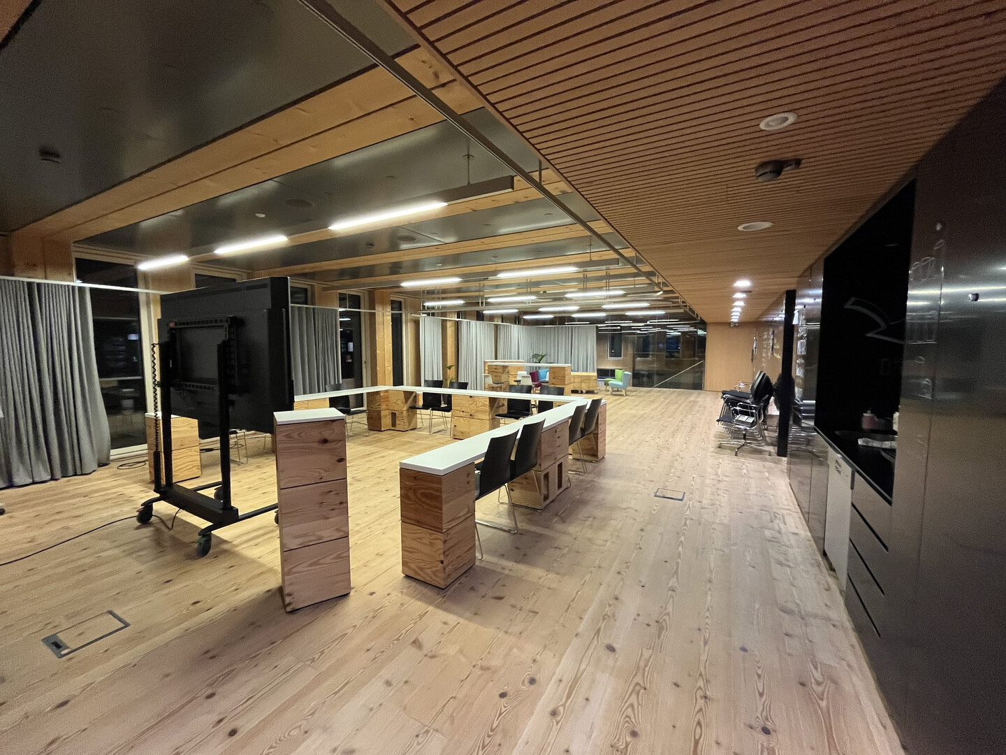 Die Seminar- und Präsentationsräumlichkeiten mit ca. 160 m² Nutzfläche befindet sich im 1. OG vom Haus L, sind hell und freundlich und ausgestattet mit einer Kühlung, kontrollierten Be- und Entlüftung, Sonnenschutz mit belichtungsabhängiger Steuerung, CAT.7-Verkabelung, einer Teeküche, getrennten WC-Anlagen und einem elektronischen Zutrittssystem. Kostenlose Kundenparkplätze sind im Areal vorhanden. Stellplätze für Mitarbeiter können im angrenzenden Parkhaus um € 56,- netto p.m. zzgl. € 13,50 p.m. Betriebskostenpauschale gemietet werden.