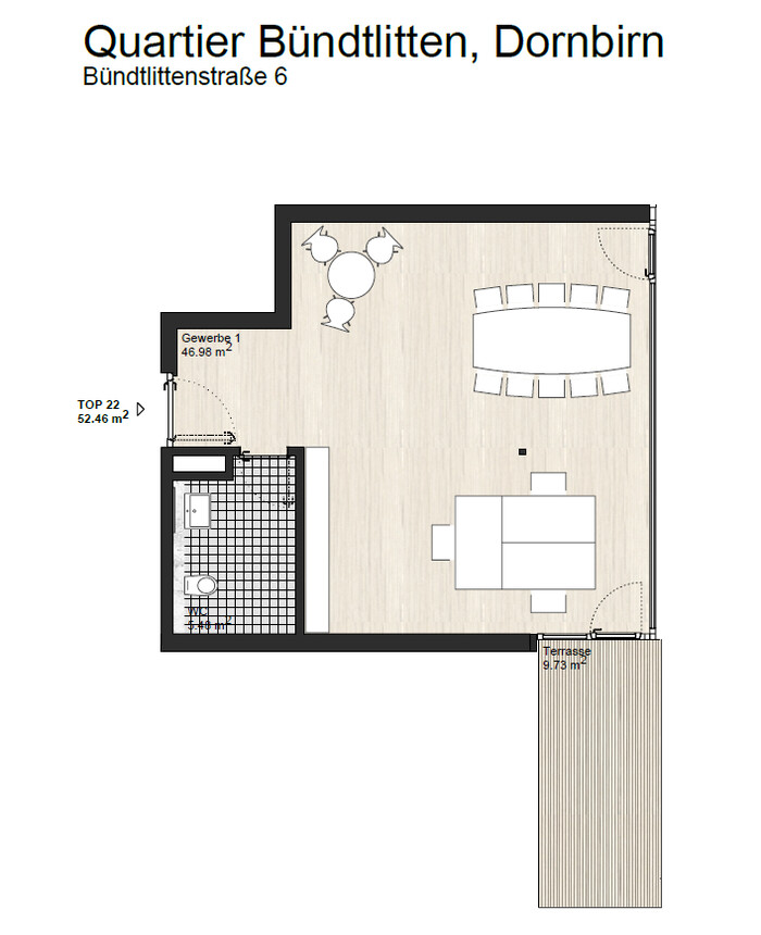 Die Räumlichkeiten befinden sich direkt an der Bündtlittenstraße in Dornbirn. Der Standort ist sowohl fußläufig, mit dem Auto als auch mit öffentlichen Verkehrsmitteln sehr gut erreichbar. Die nächste Stadtbus Haltestelle befindet sich in unmittelbar Nähe.