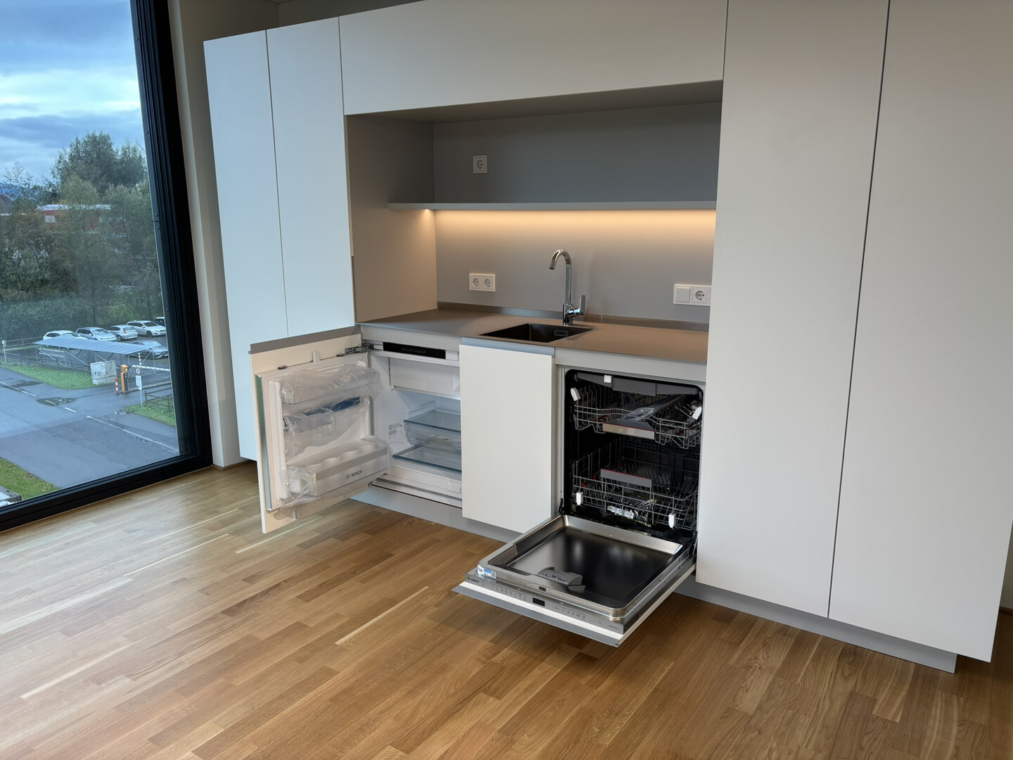 Kleine Teeküche mit Abwasch und Ablagen, Kühlschrank sowie Geschirrspüler. Das ganze in Bestlage im geschäftlichen Teil Dornbirn-Schwefel. Bahnof Dornbirn 15 Minuten zu Fuß, Bushaltestelle ca. 5 Minuten, Stadtzentrum ca. 15 - 20 Minuten. Autobahnabfahrt Dornbirn Nord ca. 2, 5 KM.