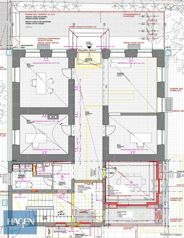 Der separate Eingang schafft Diskretion und Professionalität für Ihre Klienten. Die Bürofläche unterteilt sich in drei großzügige Büroräume sowie einen repräsentativen Besprechungsraum mit direktem Zugang zur Terrasse – perfekt für vertrauliche Gespräche in angenehmer Atmosphäre.