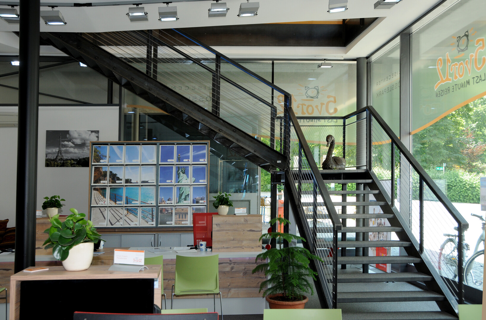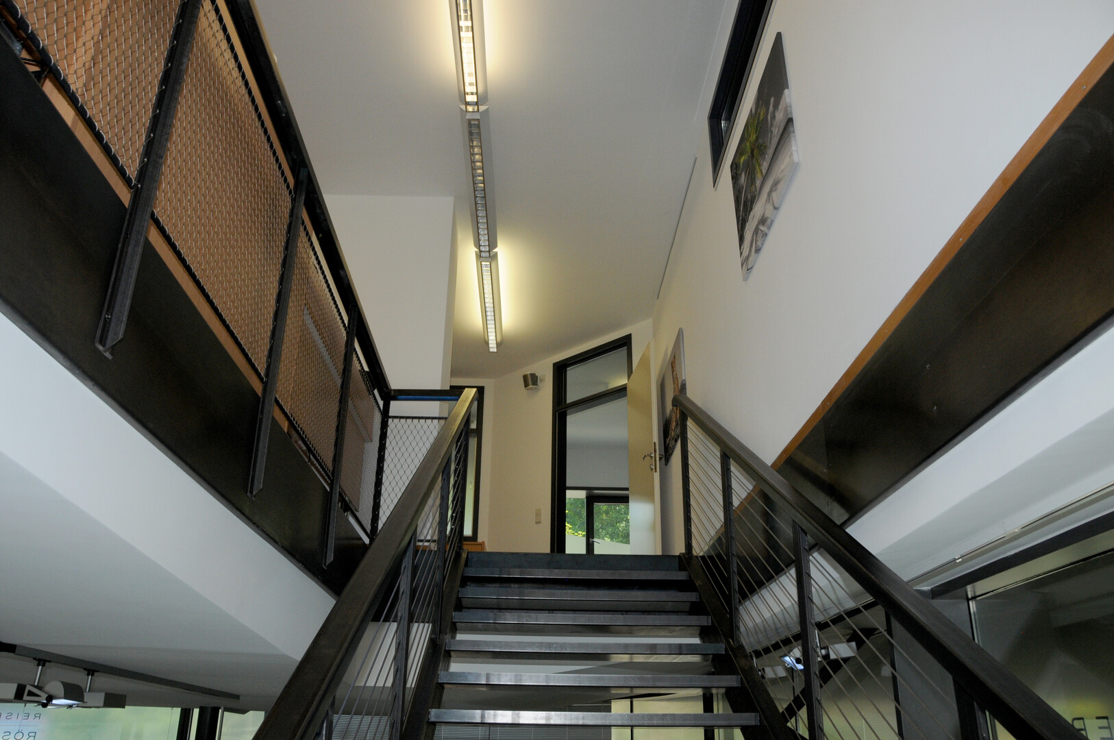 Das erste Obergeschoss, zentral erreichbar über eine Designertreppe - alternativ über einen eigenen Eingang - eröffnet viel Raum zur Entfaltung. Büroräume, Abstellräume, WCs, Bad mit Dusche warten auf Ihre Mitarbeiter. Das gesamte Stockwert besticht durch seine klare Raumaufteilung, alles in Leichtbauweise zur flexiblen (Neu)Aufteilung. Lichdurchflutet von Süd nach Nord mit einem herrlichen Panoramablick in 3 Himmelsrichtungen bleiben keine Tageslicht-Wünsche offen.