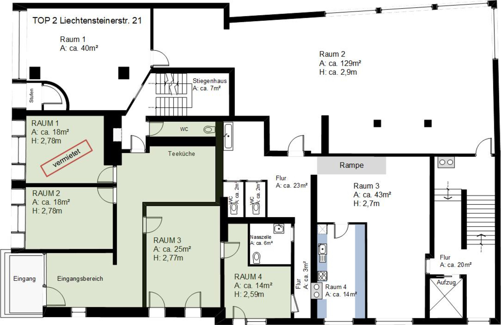 Die zentrale Lage in der Liechtensteiner Straße 21 kombiniert beste Erreichbarkeit mit einer professionellen und modernen Ausstattung. Die frisch renovierten, lichtdurchfluteten Räume schaffen die ideale Grundlage für Ihren Erfolg.