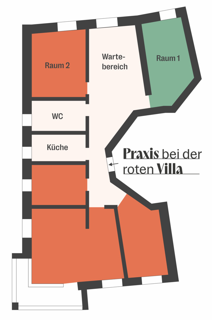 Im November 2025 eröffnete die Praxis bei der roten Villa, welche Berufsgruppen aus dem Gesundheitswesen verbindet. Die Praxis ist zentrumsnah nahe dem Bahnhof Feldkirch und trotzdem sehr ruhig im Innenhof der Villa Claudia gelegen. Sie umfasst neben den Behandlungsräumen einen großzügigen Wartebereich, ein WC und eine Gemeinschaftsküche. Parkplätze sind vorhanden.
