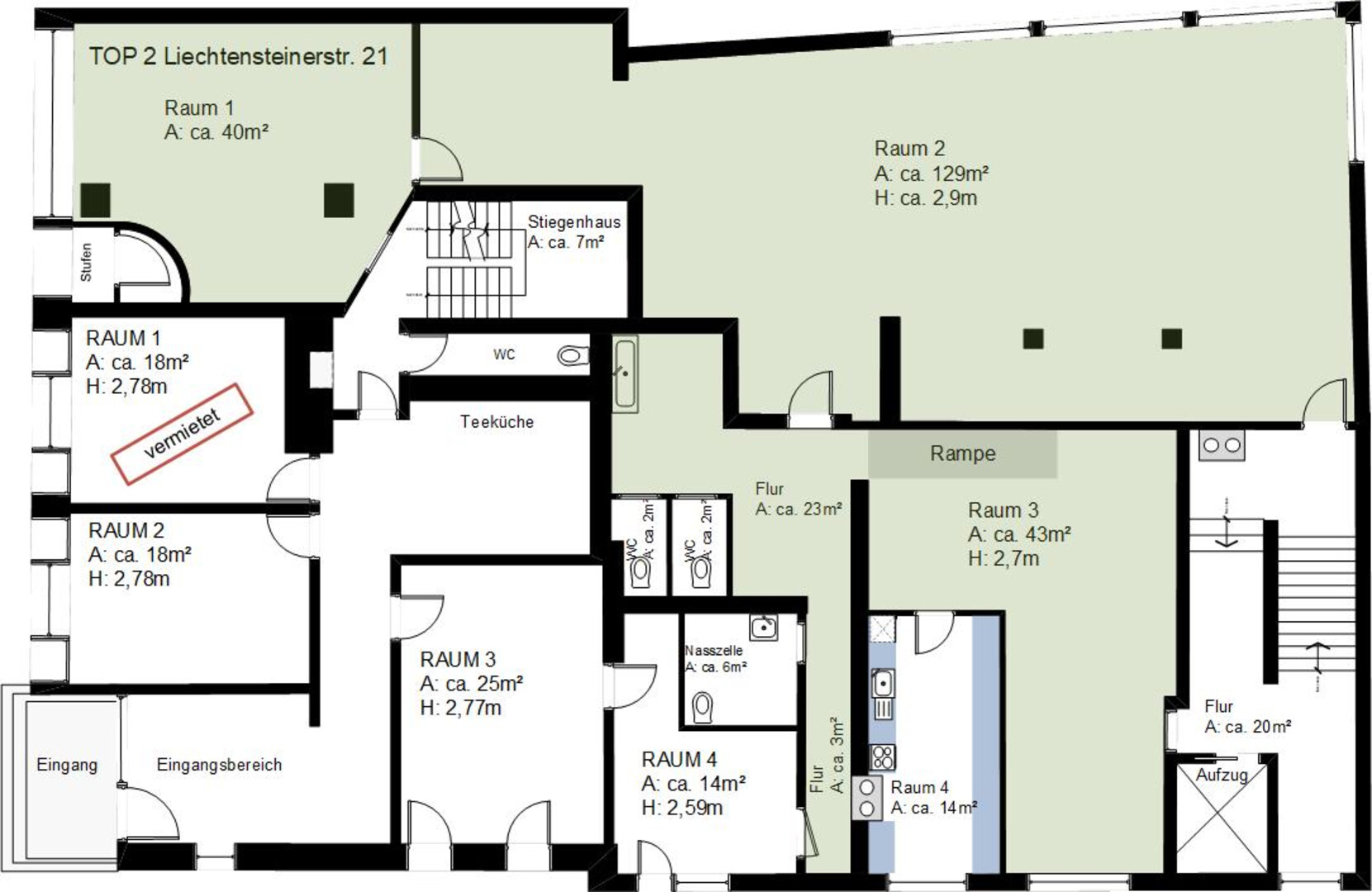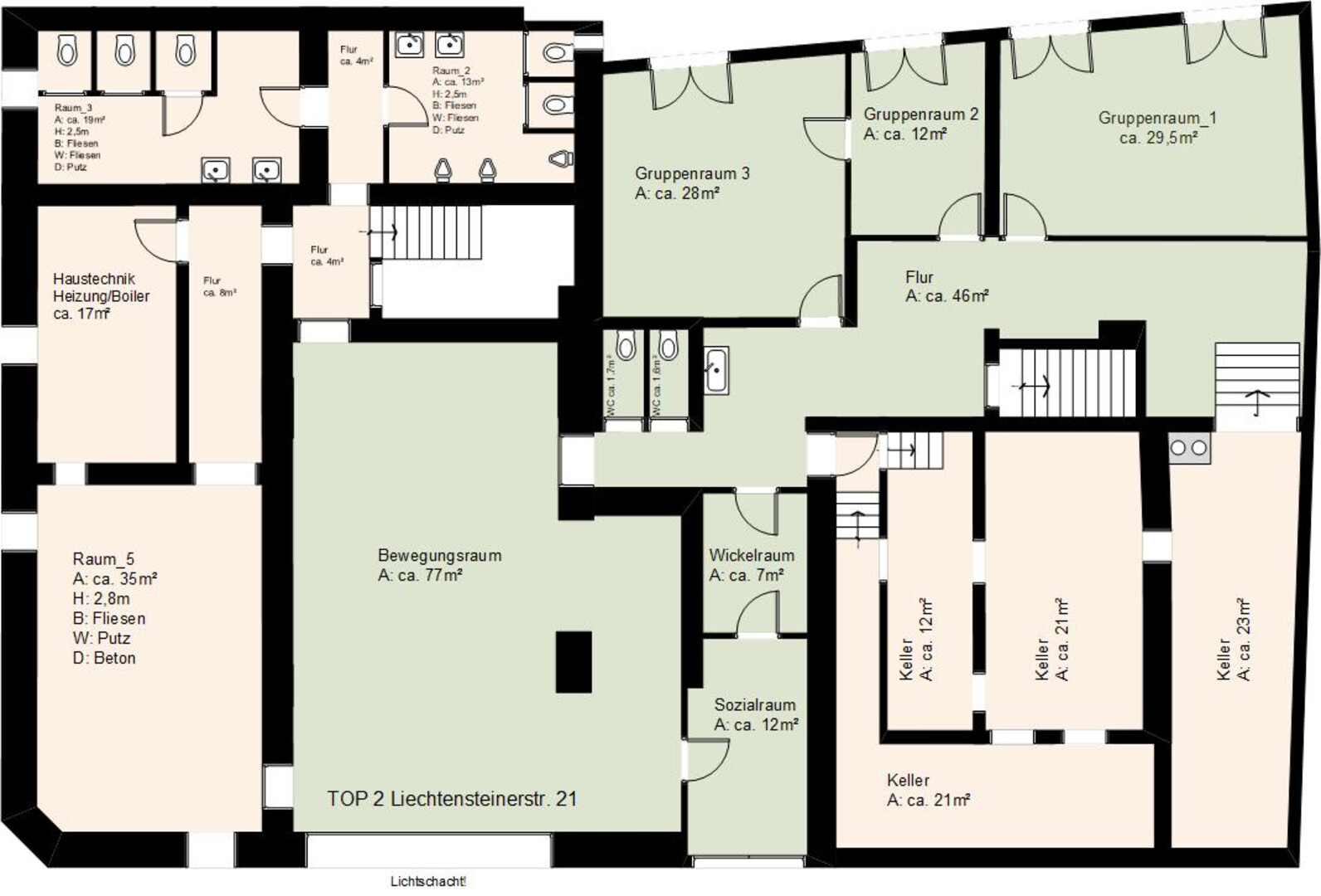 Fläche im Untergeschoss circa 214m² / Raumhöhe circa 2,8m