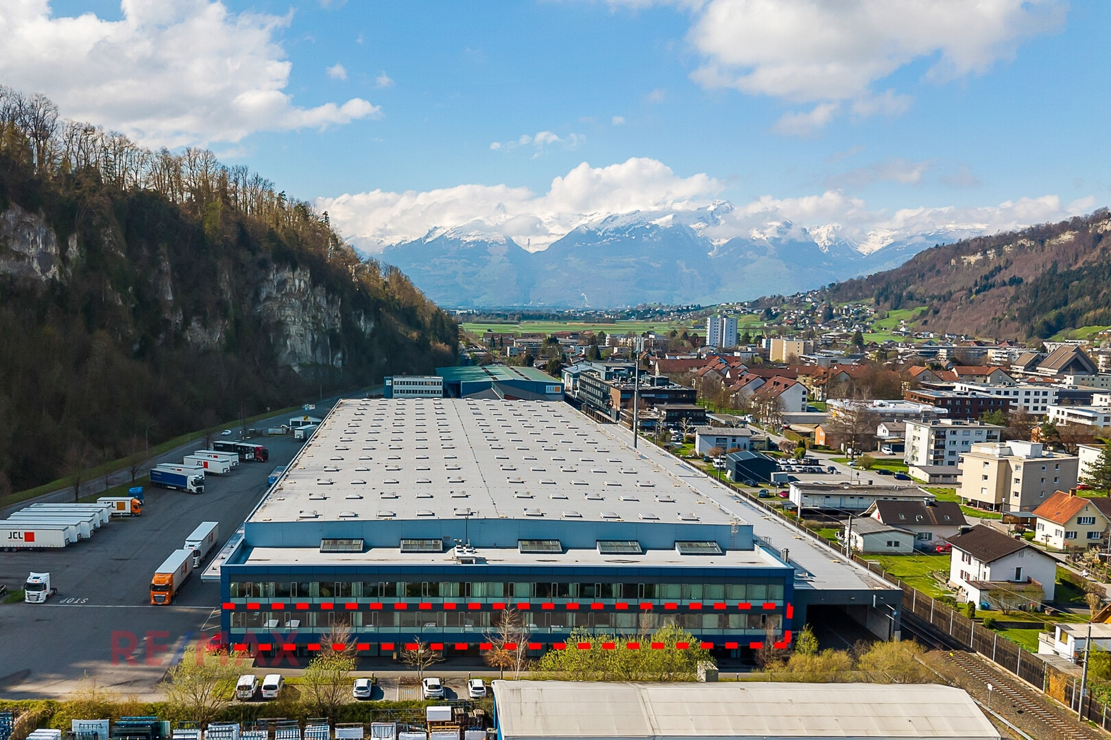 Diese großzügige und lichtdurchflutete Bürofläche mit ca. 739 m² befindet sich in verkehrsgünstiger Lage in Feldkirch/Tosters und bietet ideale Bedingungen für produktives und repräsentatives Arbeiten. Die Fläche ist flexibel teilbar in zwei Einheiten mit ca. 252 m² und ca. 426 m², verbunden durch einen zentralen Aufenthaltsraum mit Küche.