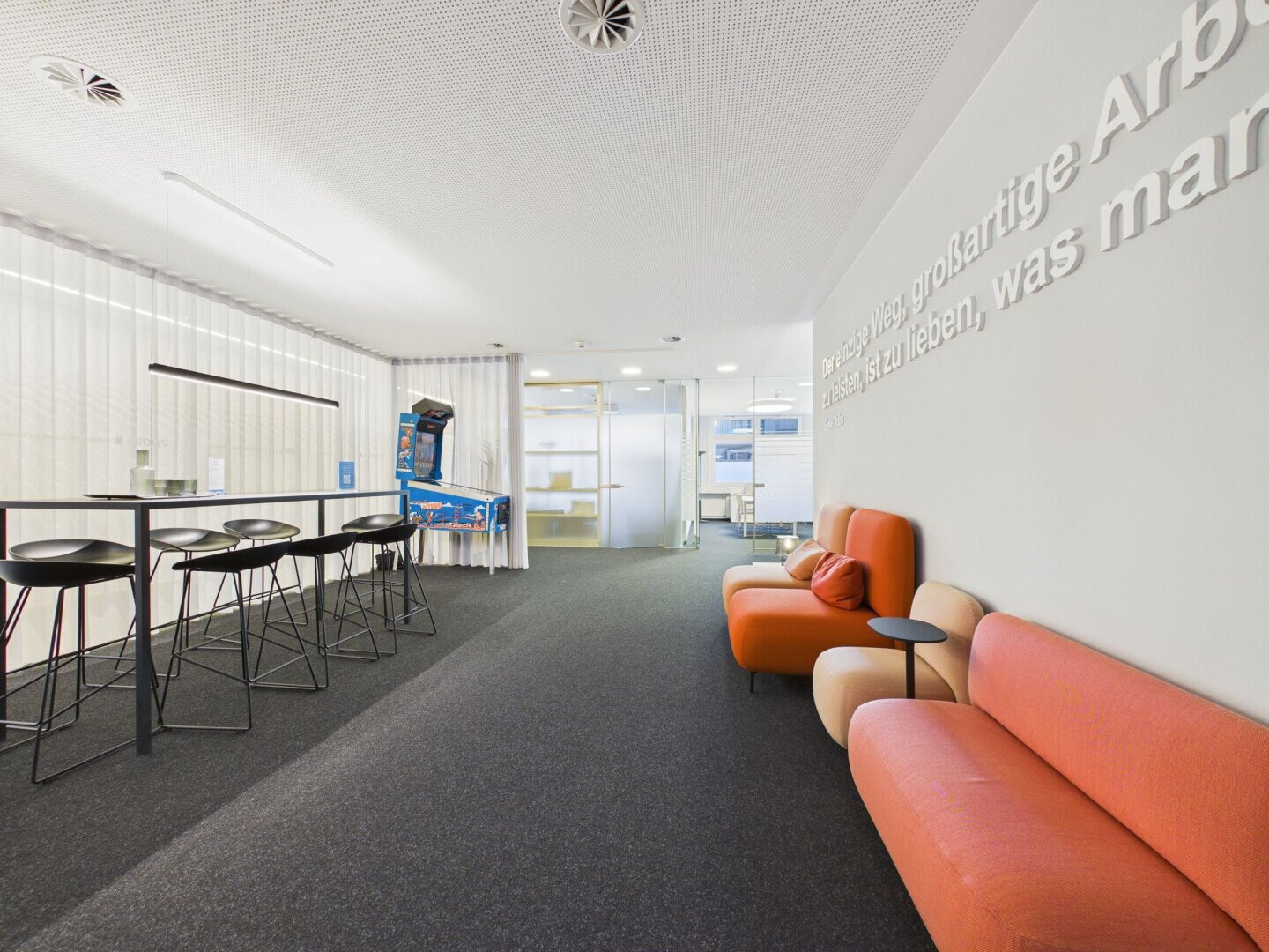 - abgehängte Lochdecken für optimale Schallreduktion