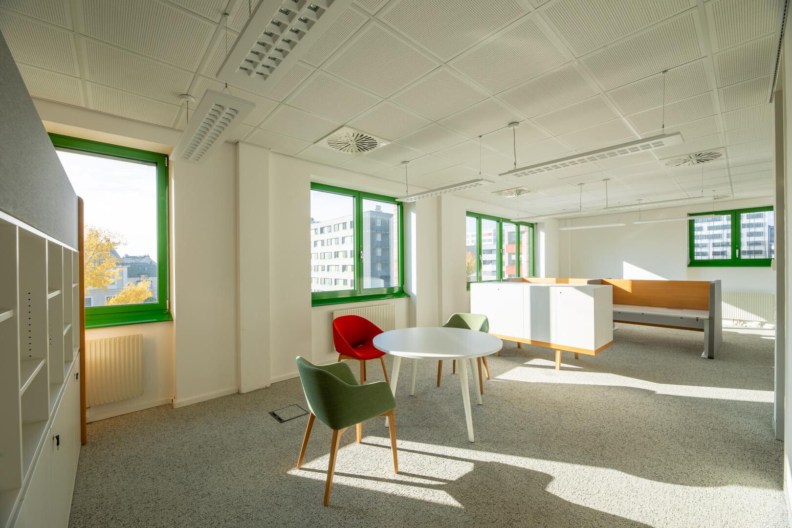 9 Büros/ Besprechungszimmern, zwei Teeküchen sowie zwei geschlechtspezifisch getrennten WC-Einheiten.