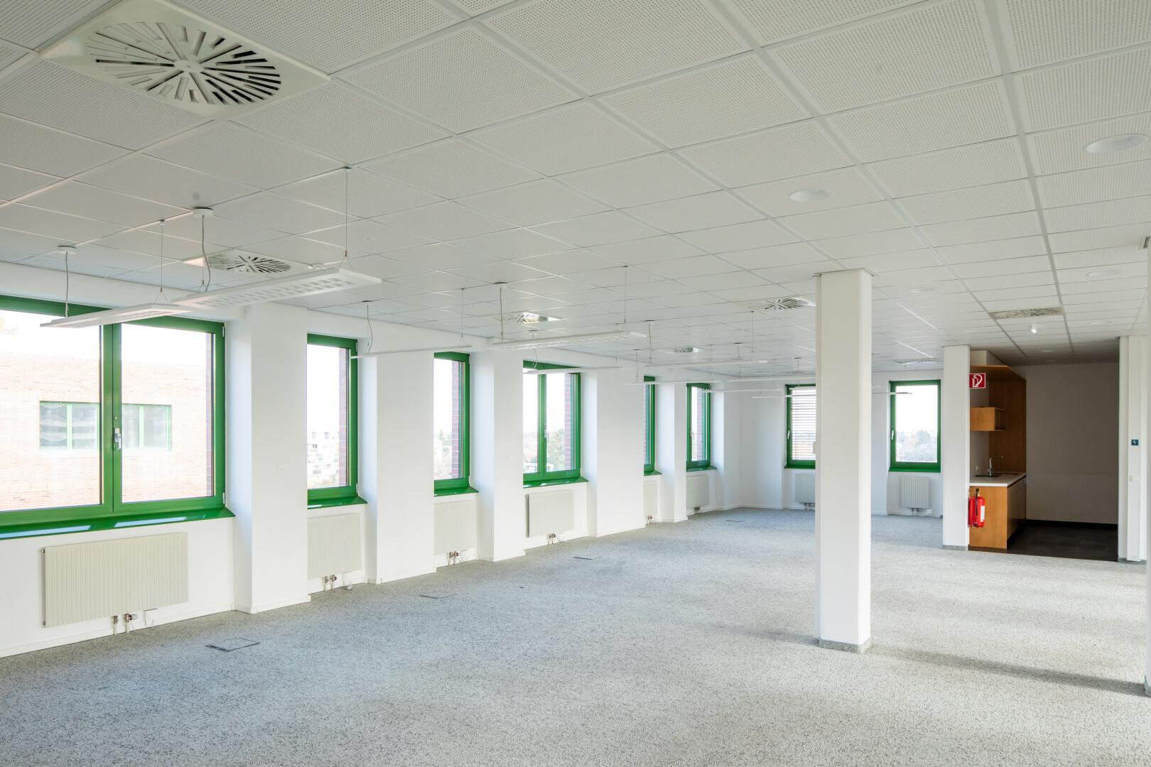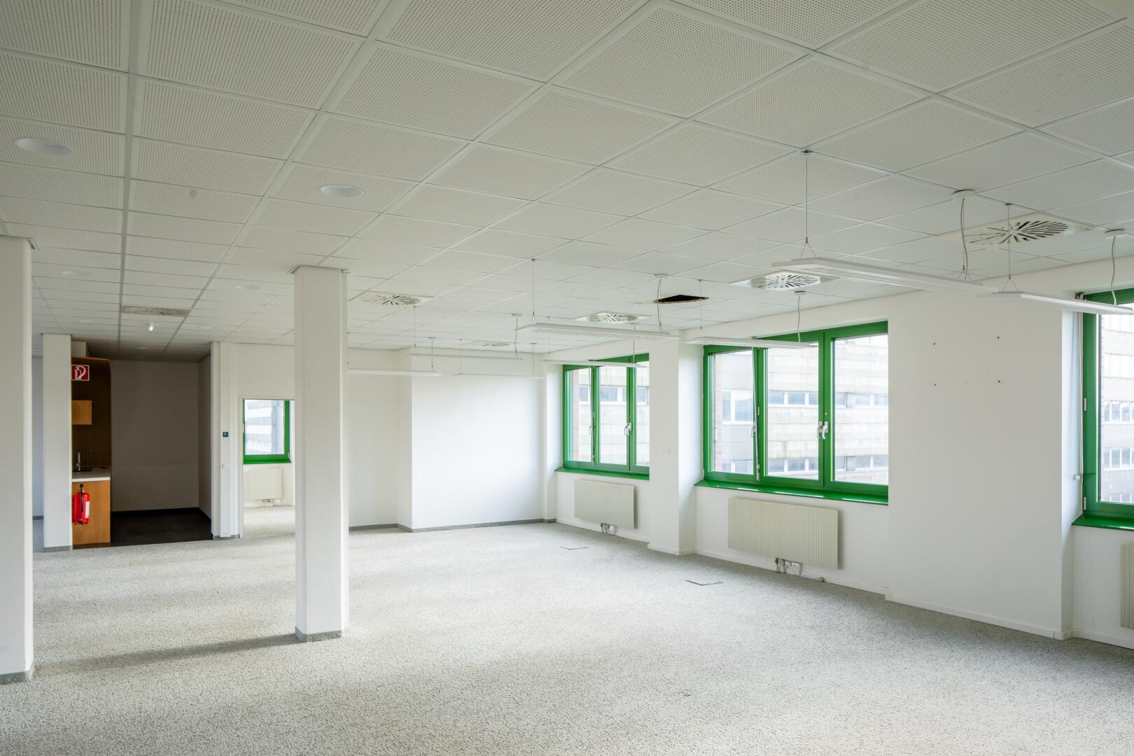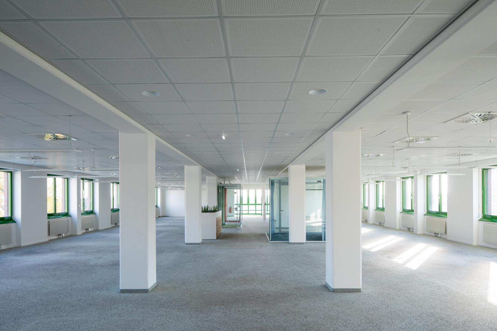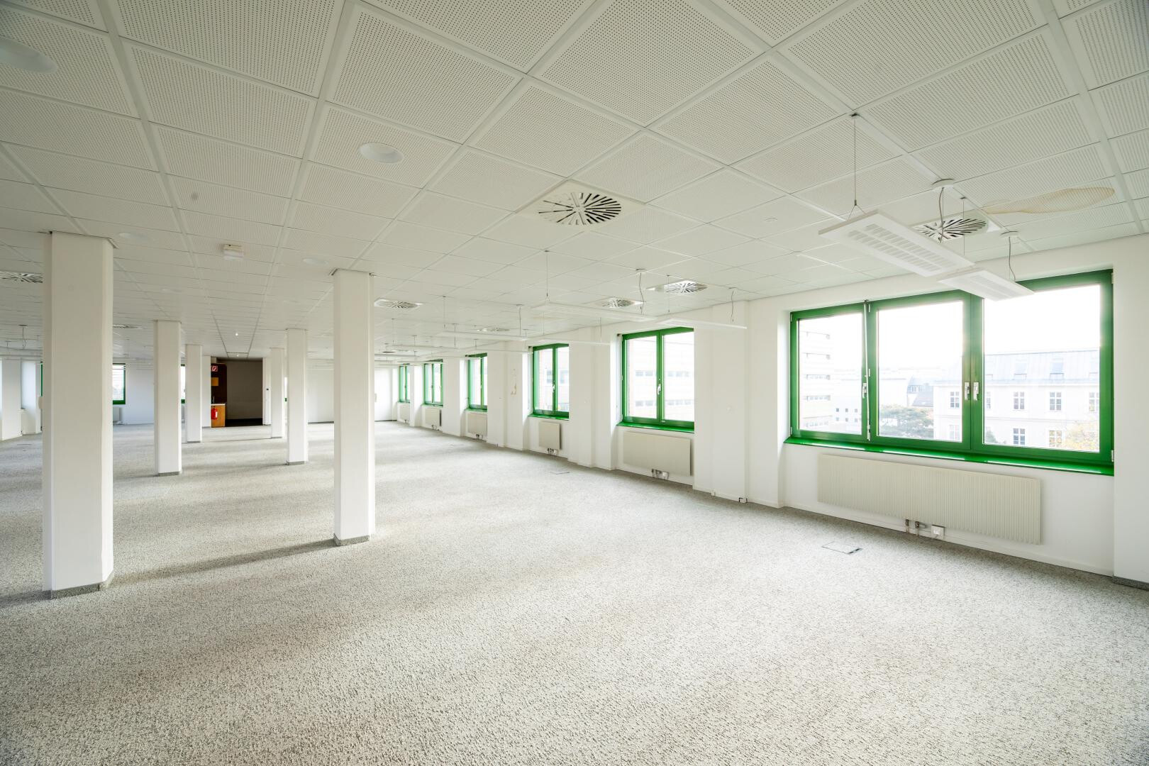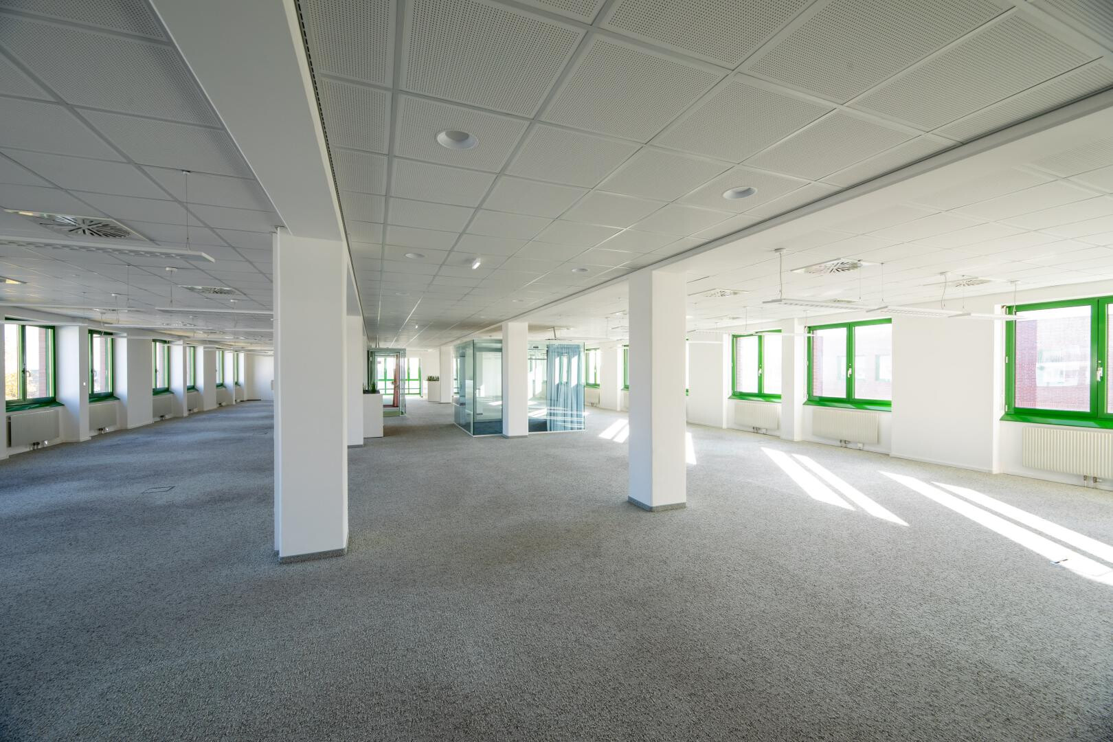 Zur Verfügung stehen Einzelbüros, Büros mit etwa 120 m² sowie Großraumbüros im Ausmaß von bis zu ca. 1.200 m².
