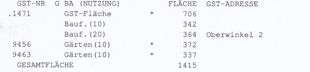 Die Grundstücksfläche des Objektes beträgt 1.415 m² groß teils BW laut Beiblatt ersichtlich.