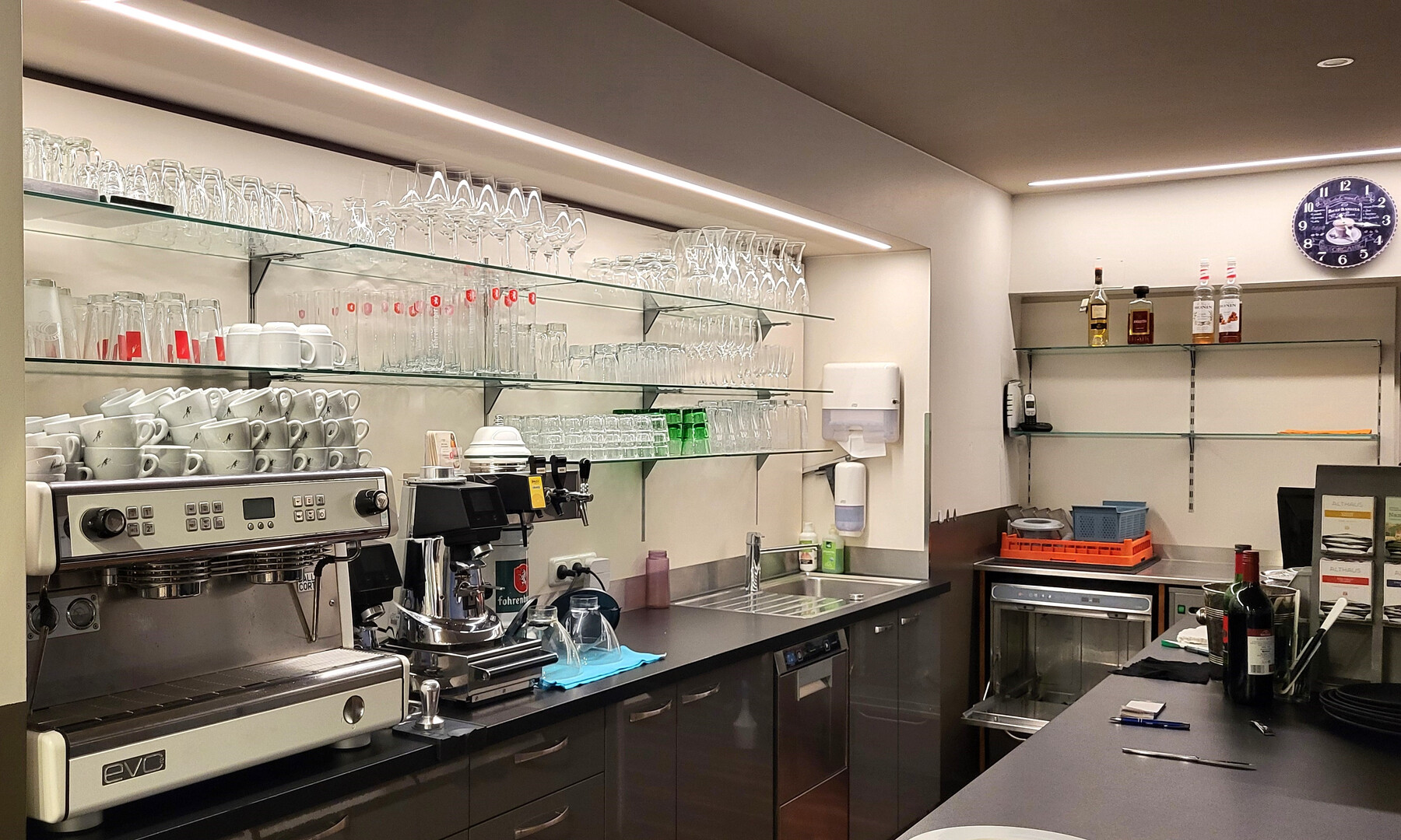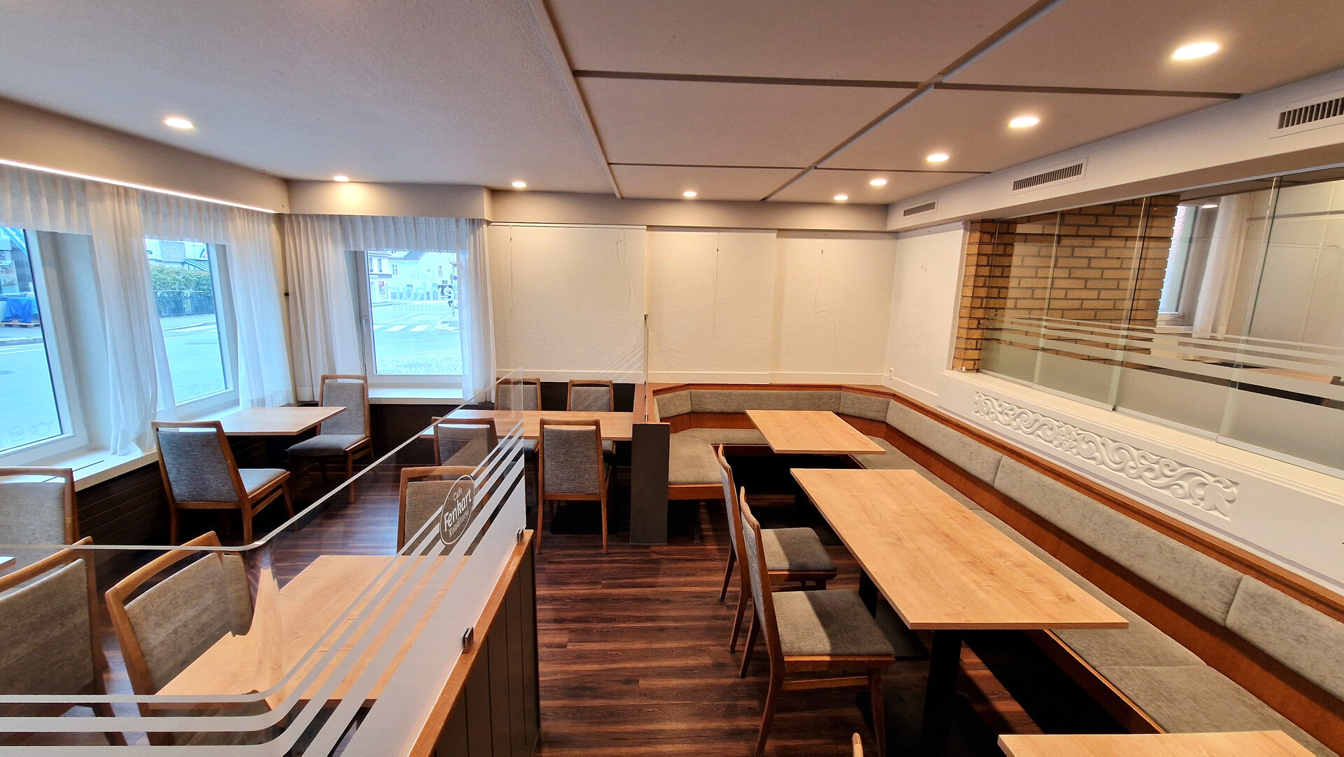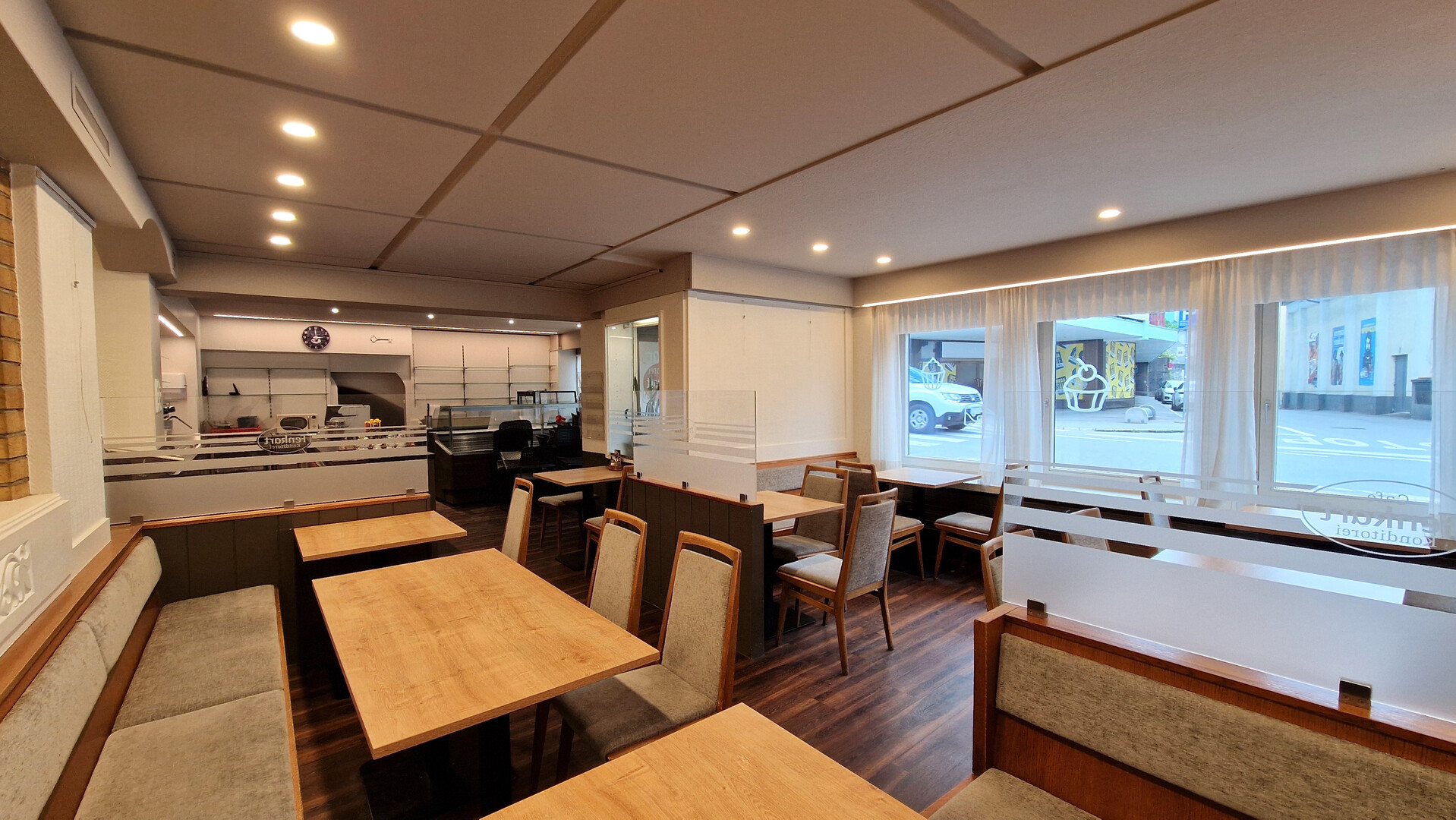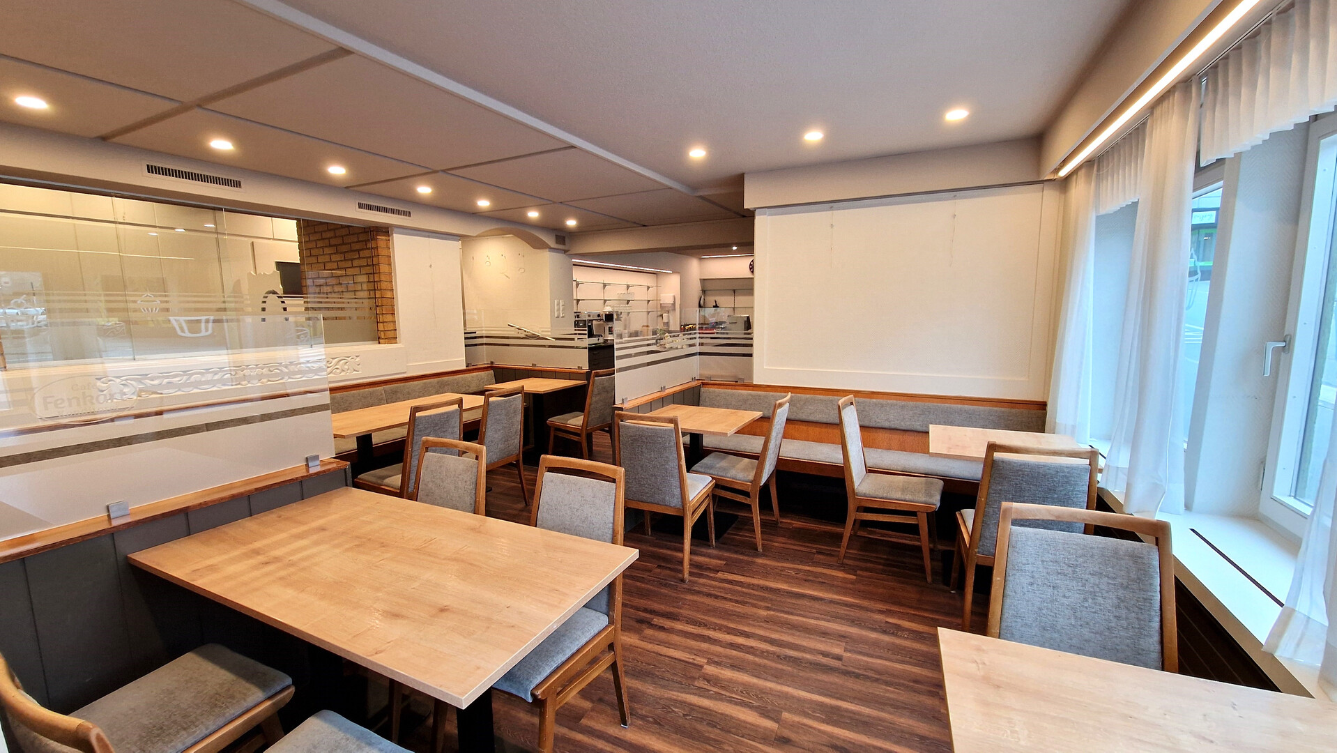 Die Gastronomiefläche besteht aus einem Verkaufsbereich, einem großen Gastraum, einer Backstube und zwei Lagerbereichen – je ein Damen- und Herren-WC sind vorhanden.