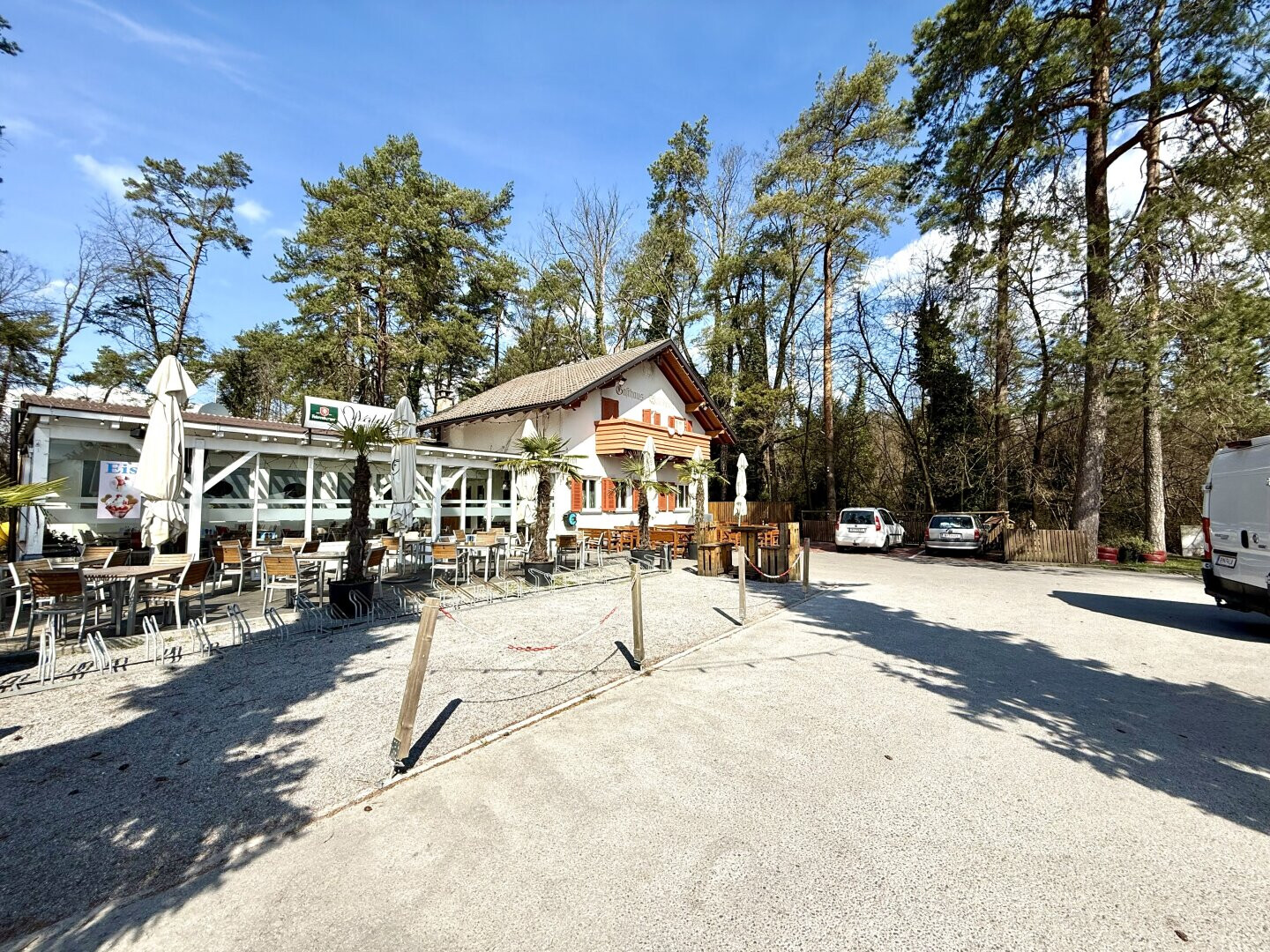 Das Gasthaus befindet sich in einer äußerst attraktiven Lage in Hard direkt am Unteren Achdamm, direkt neben dem Sportplatz des FC Hard. Der Bodenseeradweg führt fast direkt am Gasthaus vorbei.