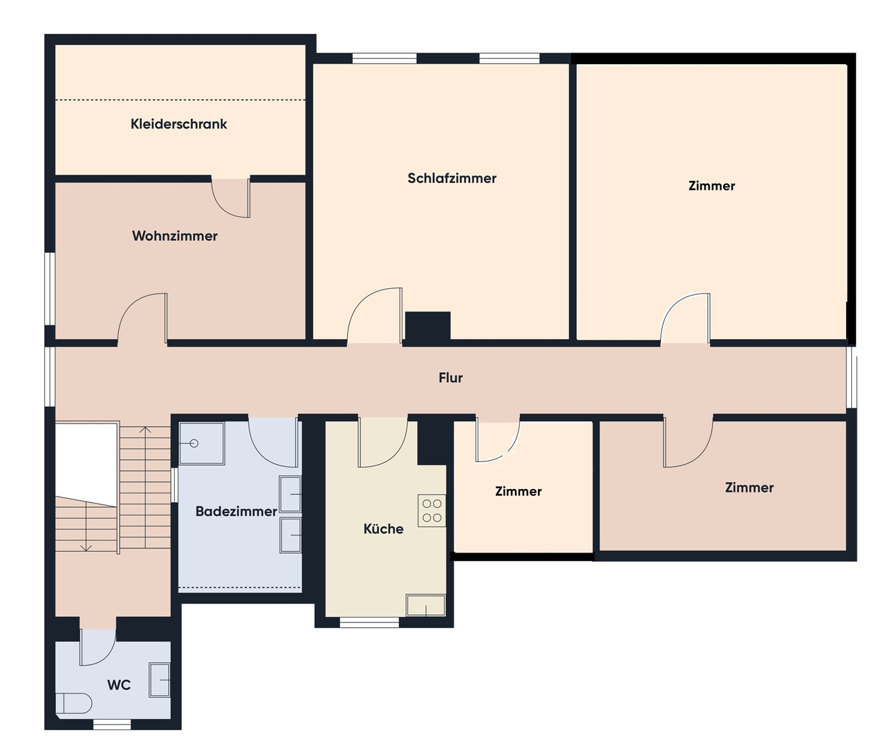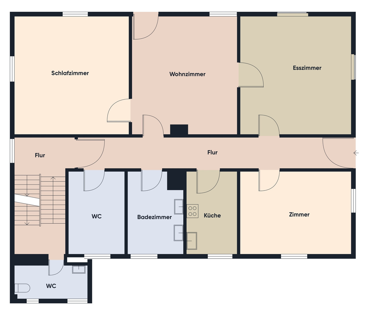 im 1. Obergeschoss mit ca. 120 m² und 4 Zimmern