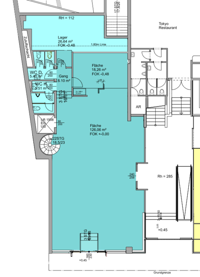 Freie Verkaufsfläche, 176,07 m² im GWL im Erdgeschoss.