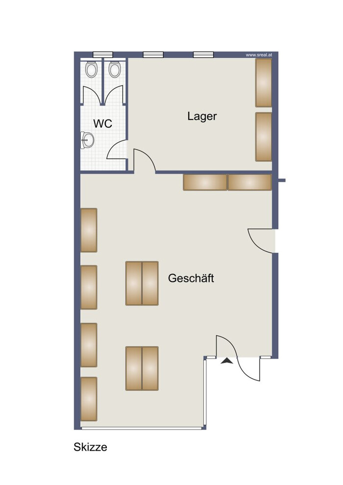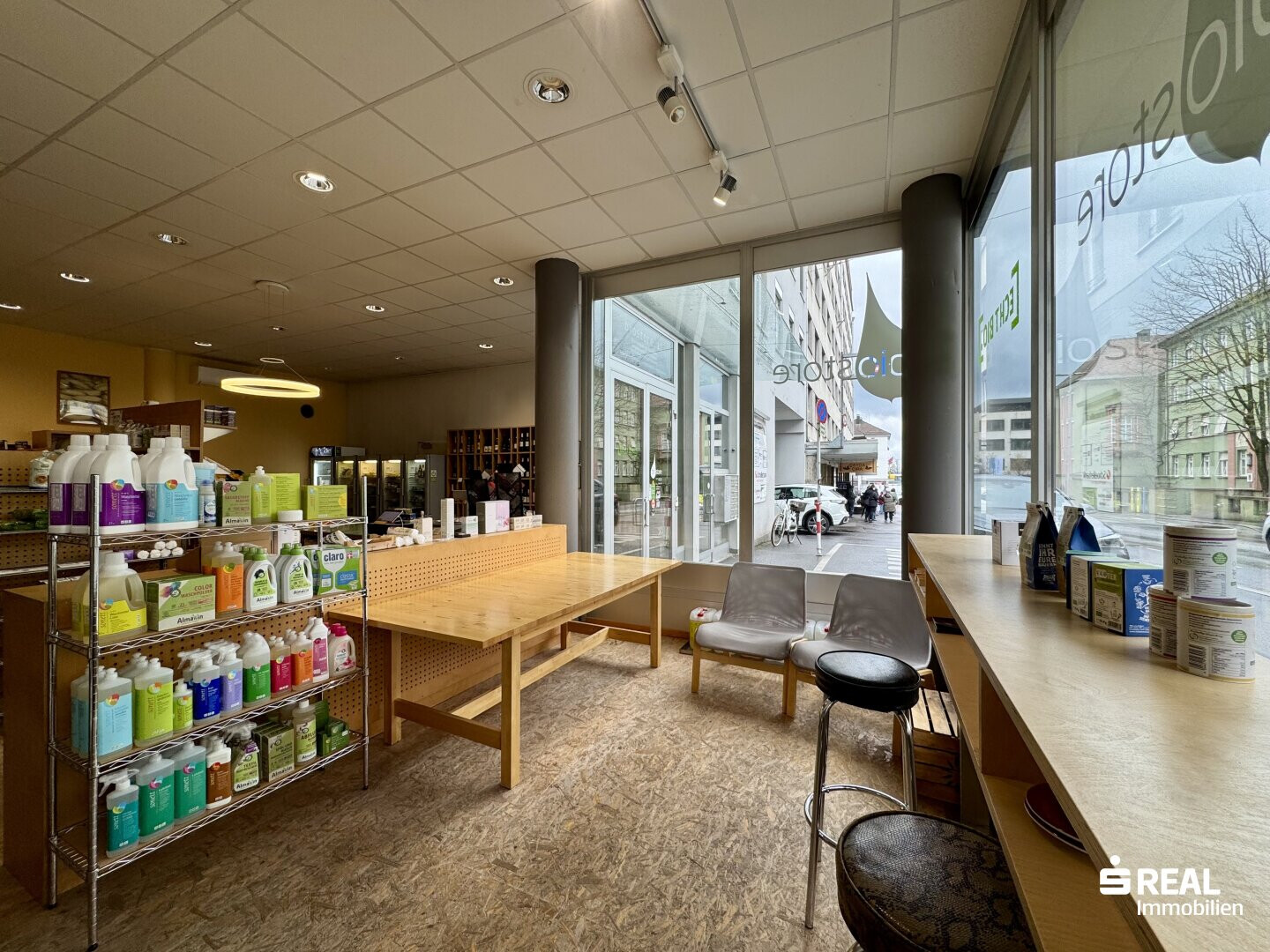 Die ca. 112 m² Nutzfläche gliedern sich in eine großzügige Verkaufsfläche, eine Lagerfläche sowie Sanitäranlagen mit zwei WCs. Die durchdachte Raumaufteilung ermöglicht eine flexible Nutzung und kann optimal an unterschiedliche Geschäftsanforderungen angepasst werden.