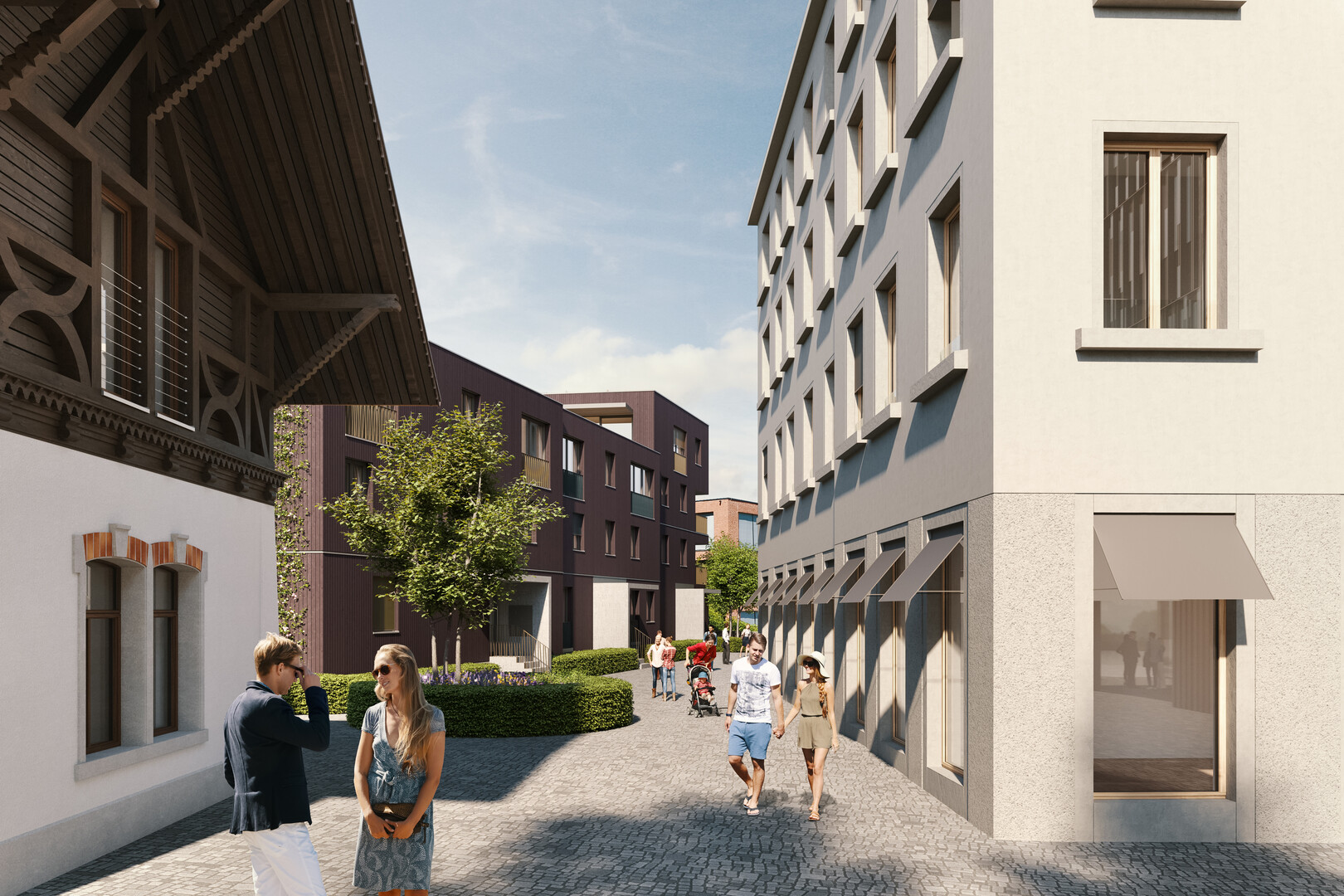 Am Eingang zur historischen Innenstadt entsteht ein Quartier, welches die Besucher:innen städtebaulich und architektonisch willkommen heißt. Neben dem neuen Rathaus für die Stadt Hohenems werden vier weitere neue Gebäude mit einem straßenseitigen gewerblichen Fokus und einem Fokus auf Wohnnutzung dem Areal inneliegend gebaut. Der historische Bestandskomplex der Villa Rosenthal wird denkmalschutzgerecht saniert und öffnet sich mit der Ansiedlung des künftigen "Literaturhaus Vorarlberg" nun für die breite Öffentlichkeit. Neben dem Literaturhaus werden unter anderem ein Café, ein Gewerbe und einige Dienstleister Platz in der generalsanierten Rosenthal Villa finden. Des weiteren wird rückwärtig zur Villa eine öffentliche Parkanlage entstehen, in welcher der Erhalt des wertvollen Baumbestandes großteils gesichert werden kann. Attraktiv fußläufige Durchwegungen und Plätze zum Verweilen und Erholen prägen das Areal. Überblick - Zahlen und Fakten:- 7 Neubaukörper- 77 außergewöhnliche Wohneinheiten: Stadtwohnungen, Wohnen im Park, mehrgeschossige Einheiten, ein- und mehrgeschossige Wohnungsnutzungen von 1- bis 4-Zimmerwohnungen- 31 attraktive Gewerbeflächen für Handel und Dienstleistung- 167 Tiefgaragenplätze - davon bis zu 70 öffentliche- Rathaus der Stadt Hohenems- Literaturhaus Vorarlberg in der historischen Villa- Café in der ehemaligen Kegelbahn mit attraktiven Gastgärten- Rathausbar an der Radetzkystraße- Öffentliche Parkanlage im alten Villengartenöffentliche Durchwegungen und Zugänge- Frei von motorisiertem Verkehr- Sehr gute Anbindung ans umliegende Gebiet.