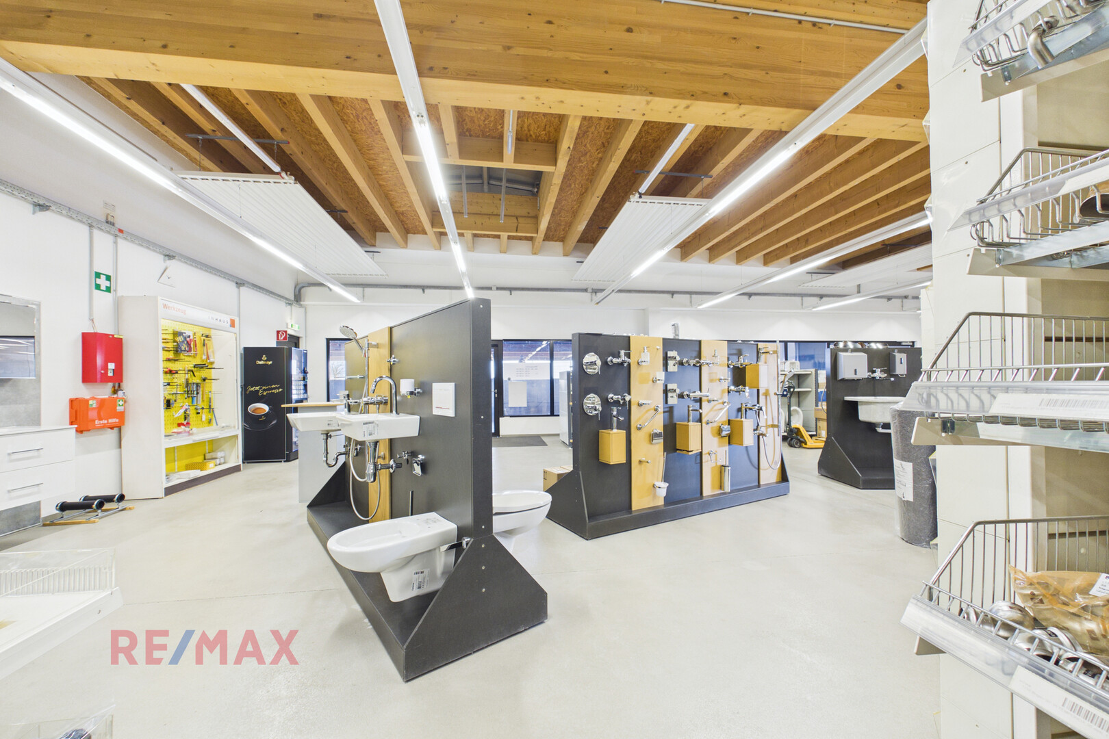 Diese moderne Lager- und Verkaufsfläche in Hard ist optimal auf die Bedürfnisse regionaler Baufirmen und Handwerksbetriebe ausgerichtet und eignet sich ideal als Standort für die schnelle und unkomplizierte Selbstabholung von Baumaterialien und Waren. Die verkehrsgünstige Lage nahe der A14 Rheintalautobahn ermöglicht eine rasche Erreichbarkeit aus Bregenz, Dornbirn, St. Gallen und Lindau – perfekt für kurze Wege zwischen Baustelle und Lager.