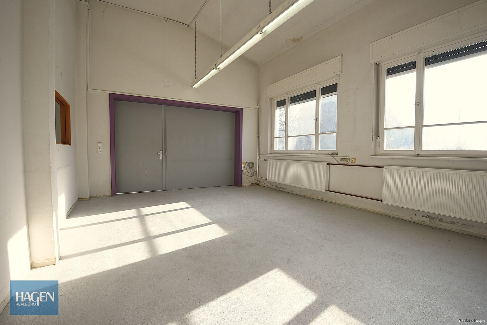 Die Halle überzeugt durch ihre sehr hohe Raumhöhe, was eine optimale Nutzung für Lagerung, Produktion oder Werkstattbetrieb ermöglicht.