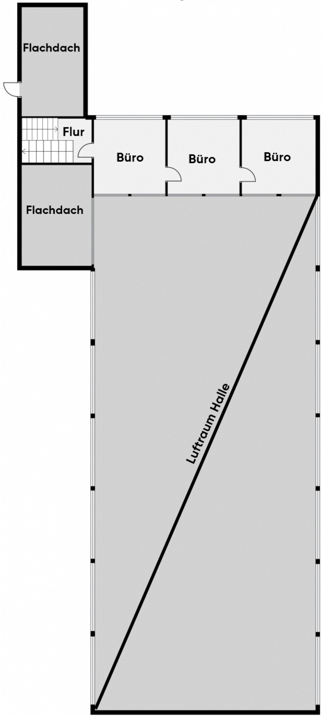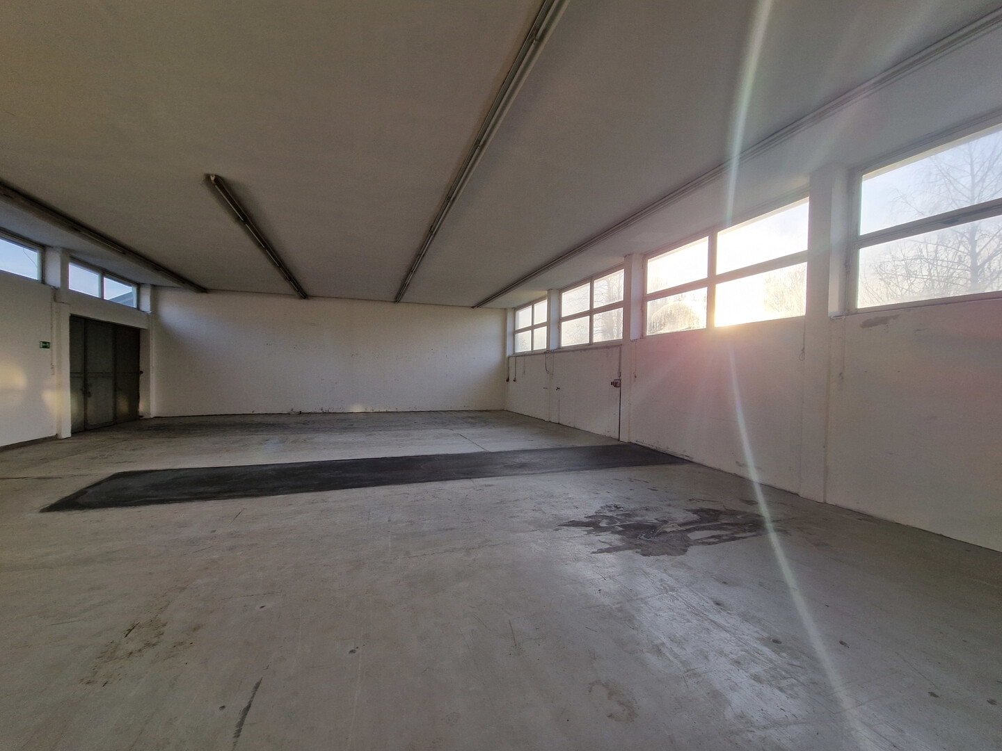 Die Halle verfügt über Fensterfronten, die sich über die gesamte Länge erstrecken, für eine helle, natürliche Beleuchtung sorgen und eine angenehme Arbeitsatmosphäre schaffen.