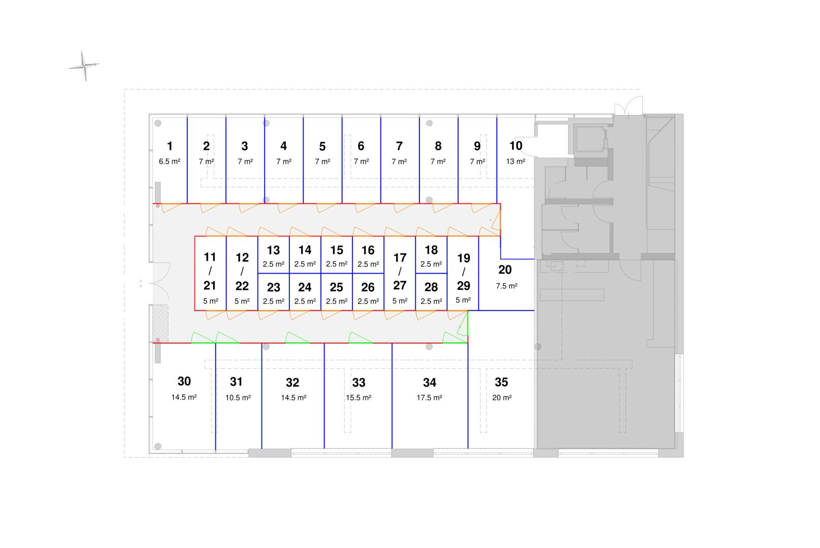 - Breite der Türen: Lager 30 - 35 = 1,15 m / Rest = 0,95 m